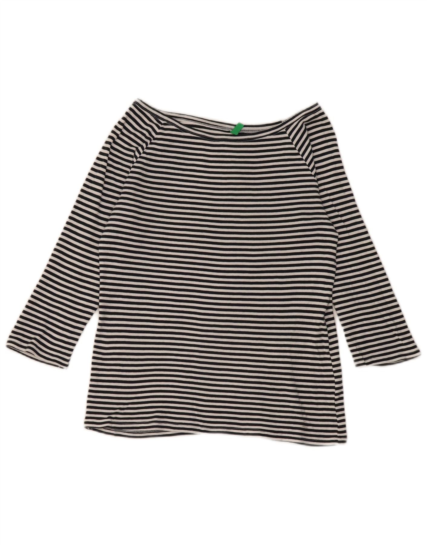 BENETTON Top Mujer Manga 3/4 UK 40 Mediano Algodón A Rayas Negro