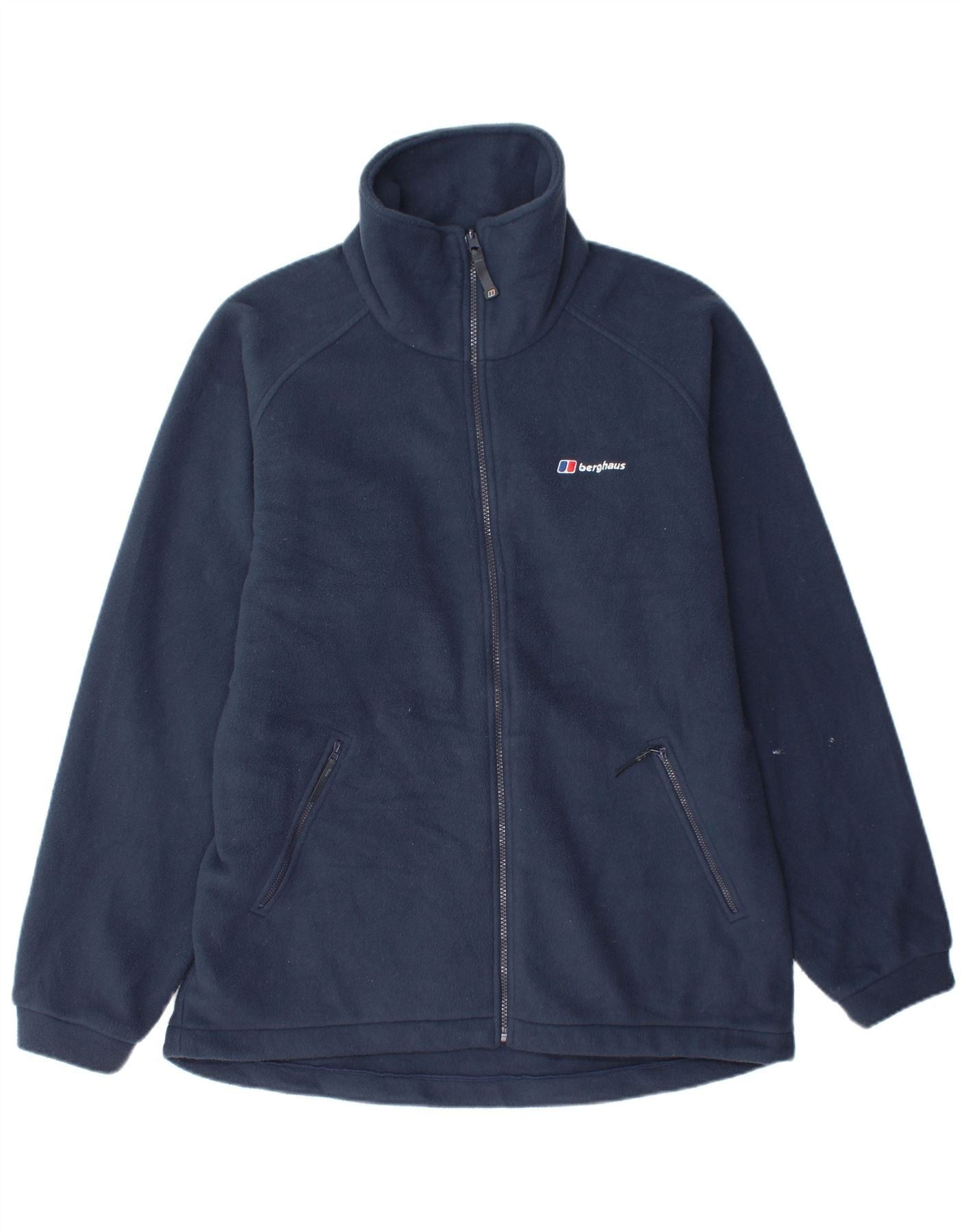 - AI Description: This Berghaus men's Fleece Jacket is crafted from 100 percent polyester fleece in a versatile navy blue. The high neck and full zip closure offer warmth and adjustability. Long sleeves and a regular fit ensure comfortable wear. It features practical zipped pockets for secure storage. This breathable jacket provides comfort, making it ideal for outdoor activities. A subtle logo accent completes the design.