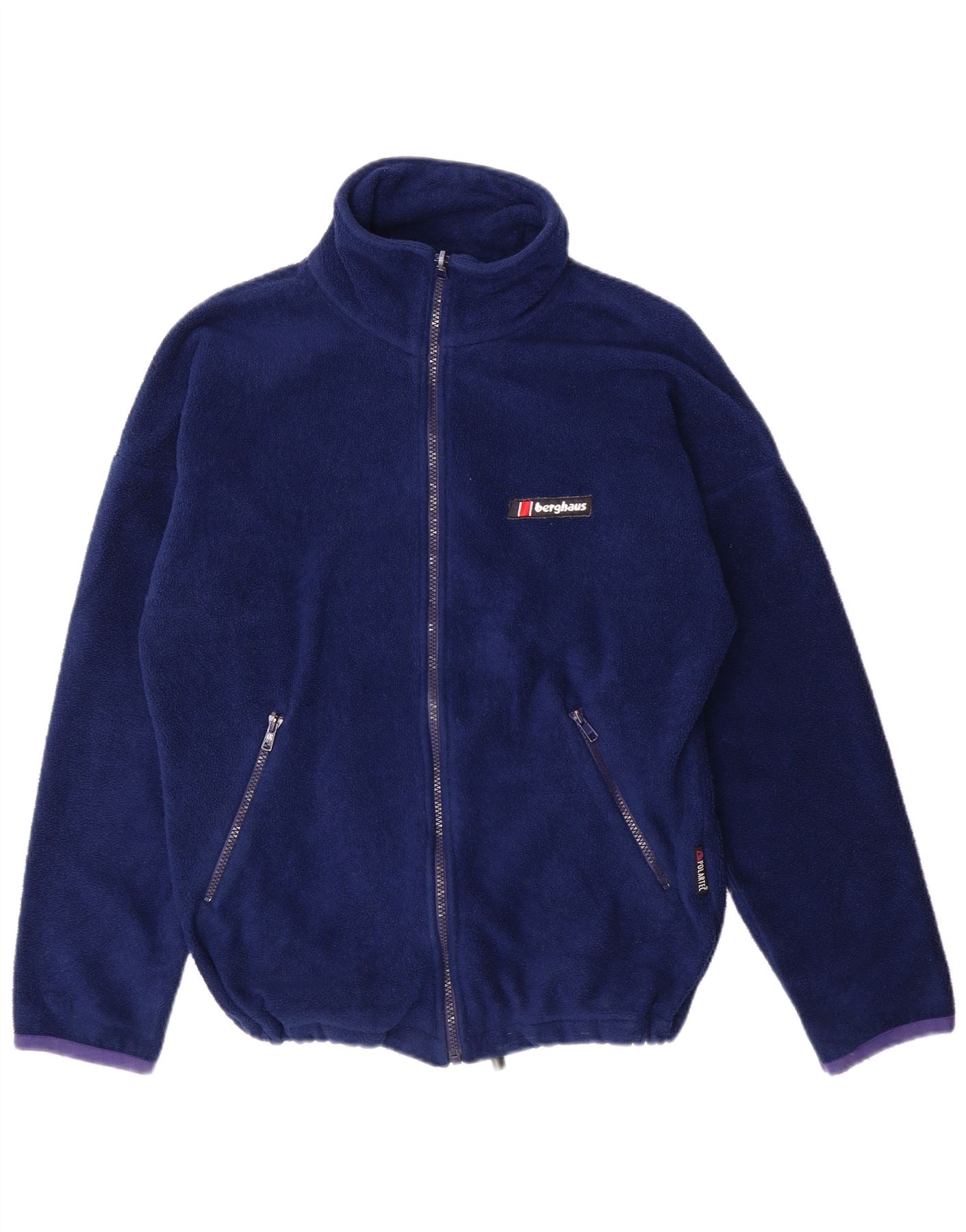 - AI Description: This Berghaus womens Zip Hoodie Sweater is crafted from soft navy blue fleece, offering lightweight thermal comfort. It features a full zip closure and a collared neckline. Long sleeves and a regular fit ensure ease of movement. Zipped pockets provide practical storage. A subtle brand logo adds a signature accent. This modern style is perfect for everyday wear.