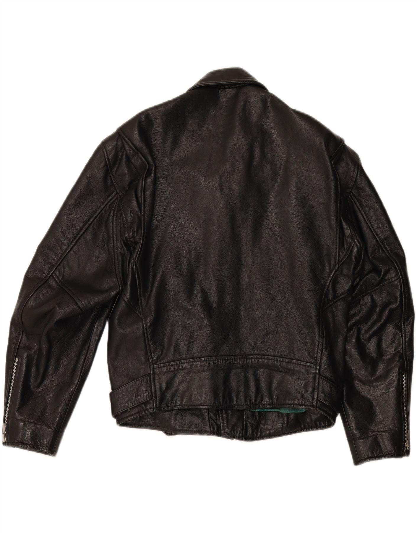 BERTO LUCCI Chaqueta motera de cuero para hombre UK 36 Small Black Leather