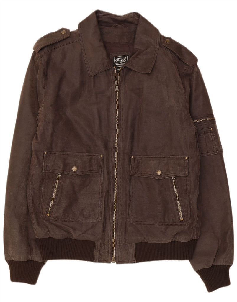 BEST COMPANY Chaqueta de cuero militar para hombre UK 44 2XL Cuero marrón