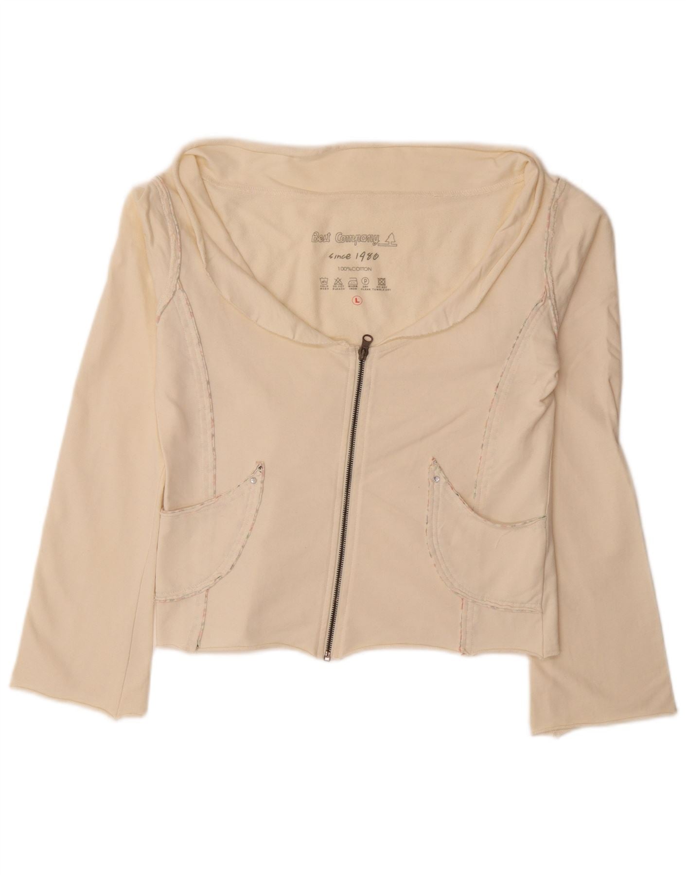 BEST COMPANY Womens Crop Cardigan Top UK 14 Large Off White Cotton