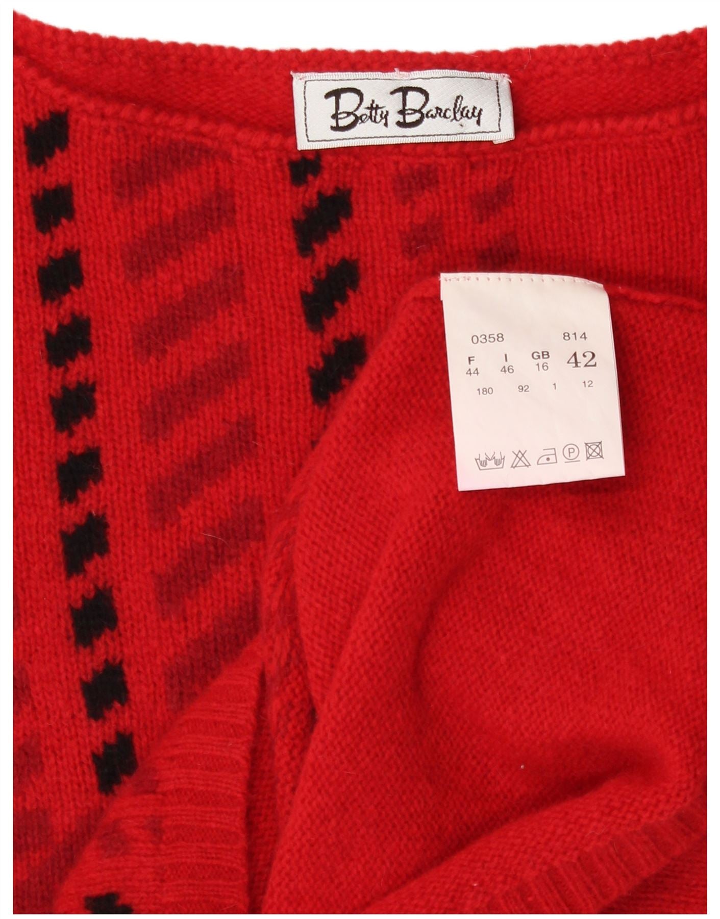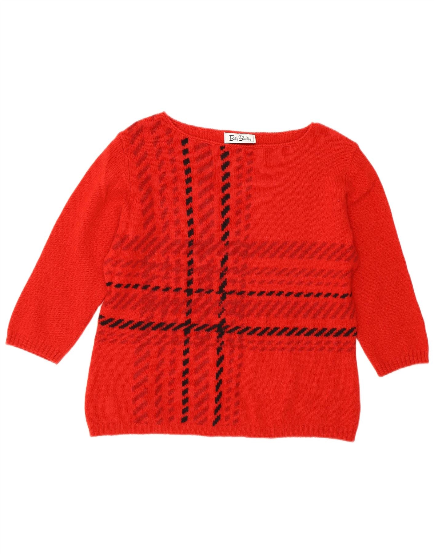 BETTY BARCLAY Womens Crop Boat Neck Jumper Sweater UK 16 Large Red