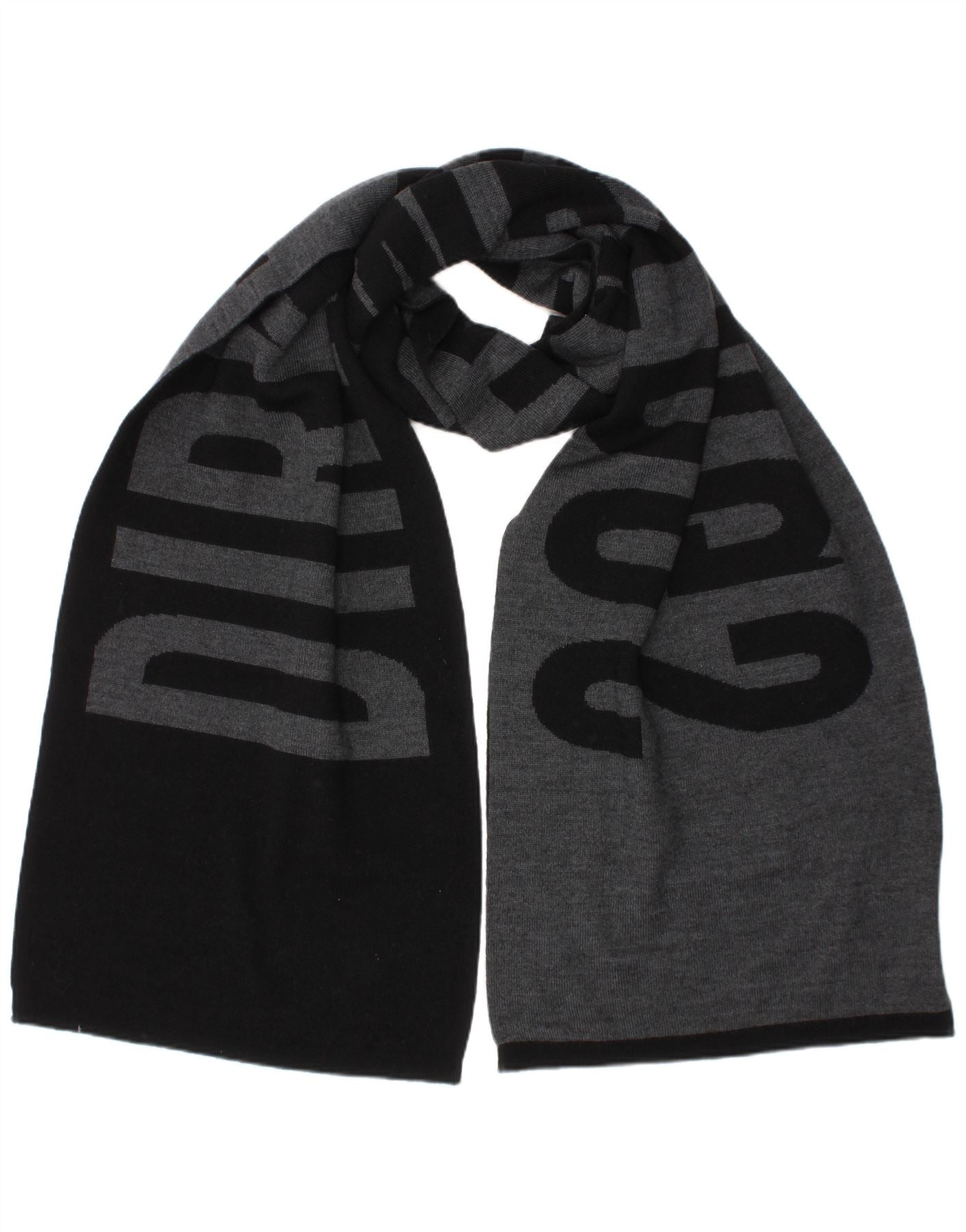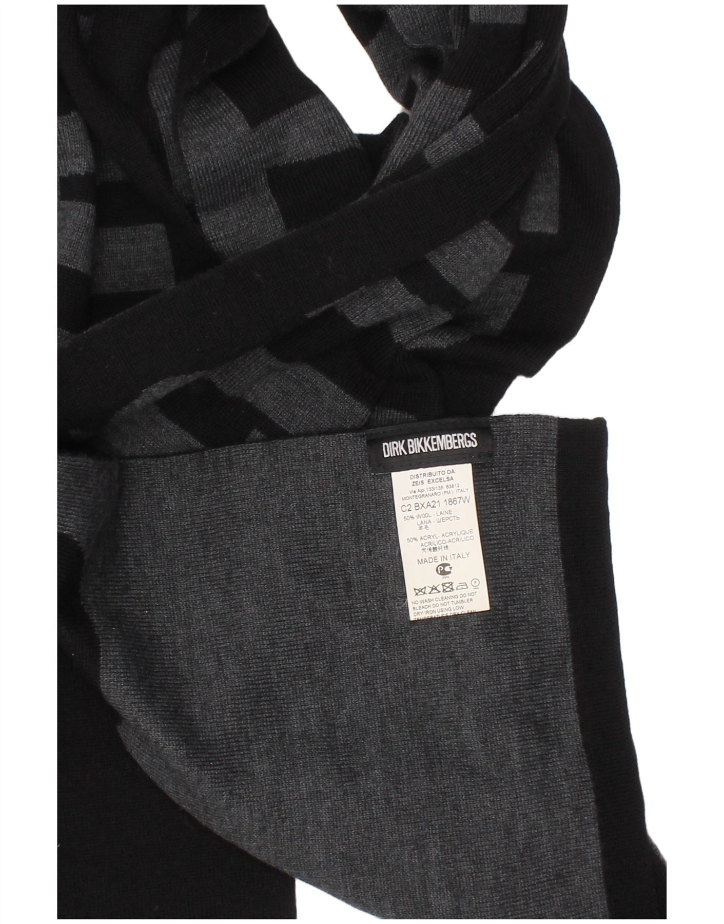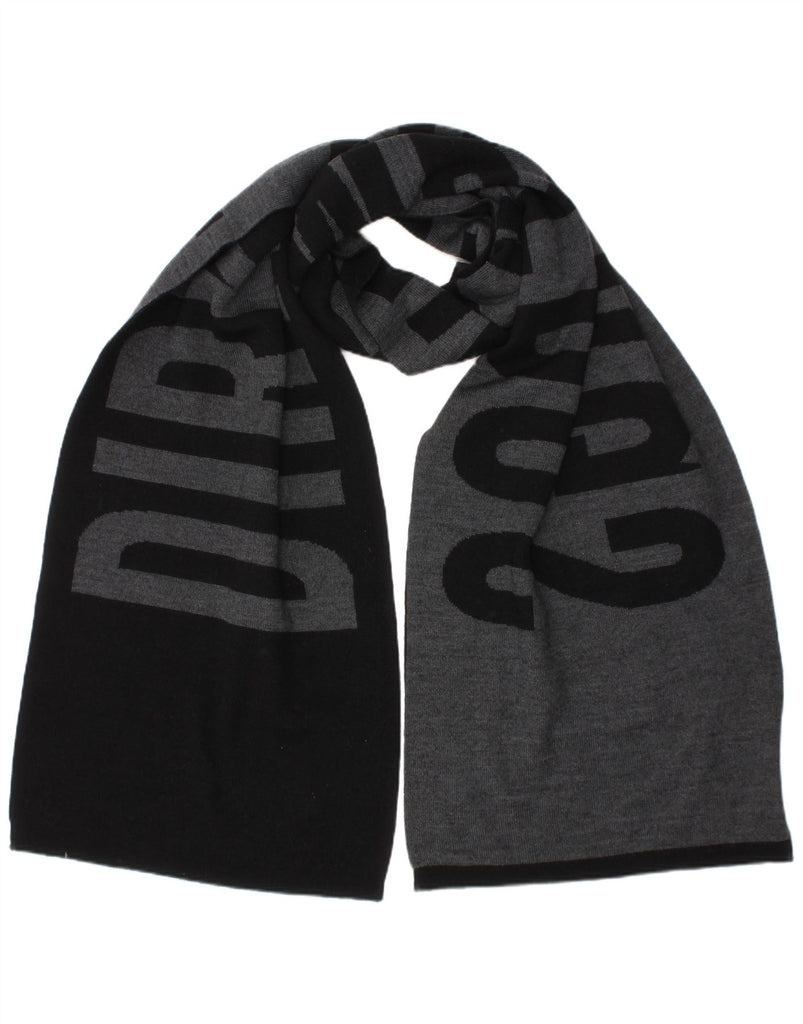 BIKKEMBERGS Mens Graphic Rectangle Scarf One Size Black Wool Designer