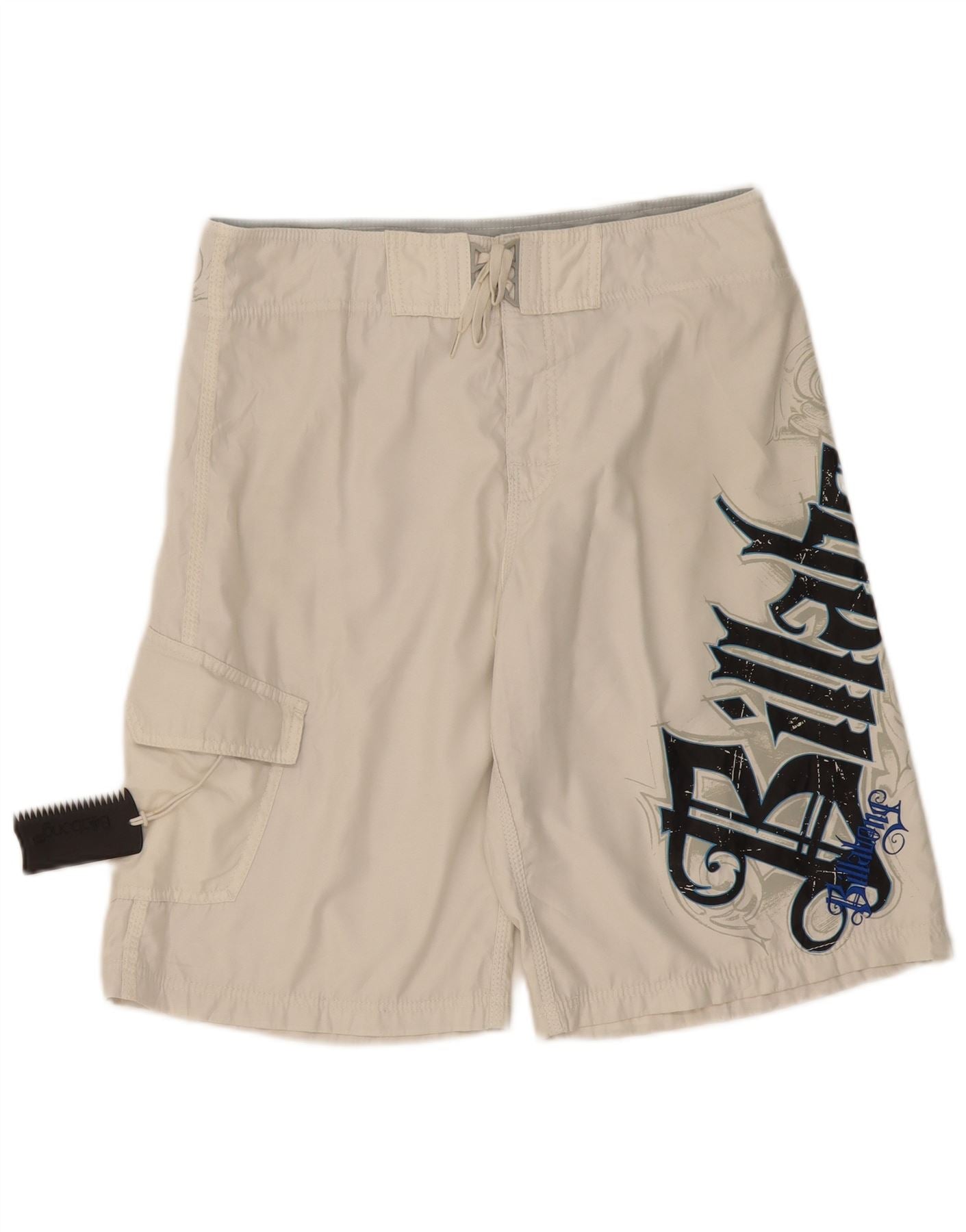 BILLABONG Mens Graphic Swimming Shorts Large White Polyester