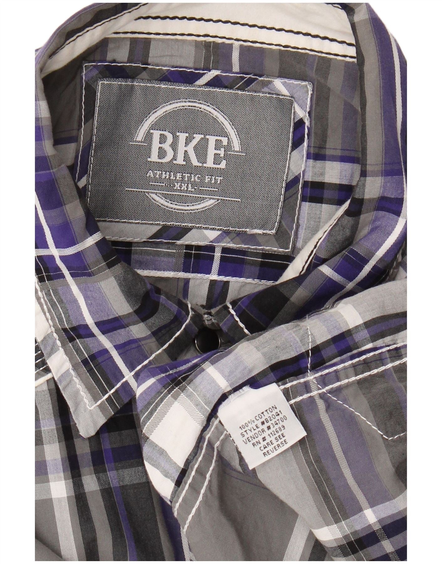 BKE Camisa de franela de ajuste atlético para hombre, 2XL, algodón a cuadros gris