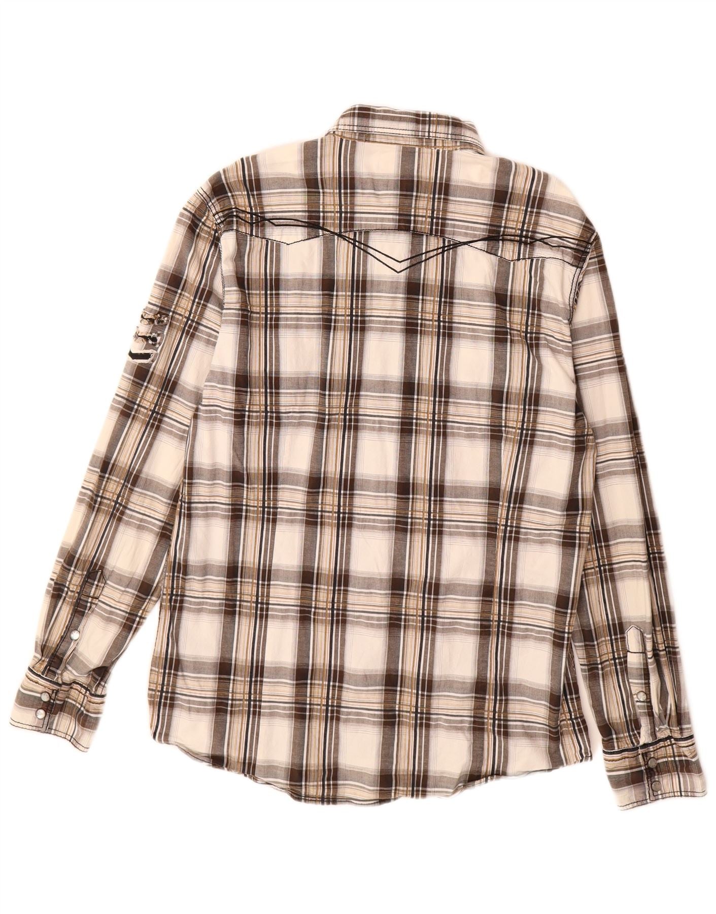 BKE Camisa atlética para hombre de algodón a cuadros marrón grande