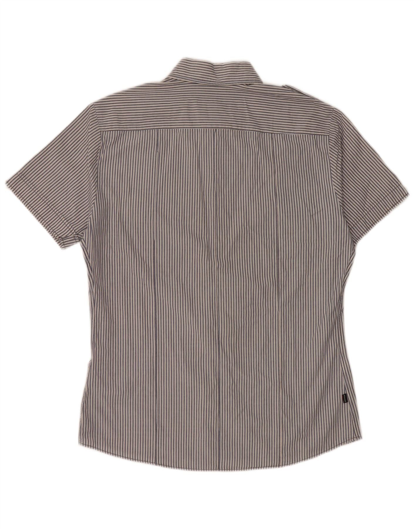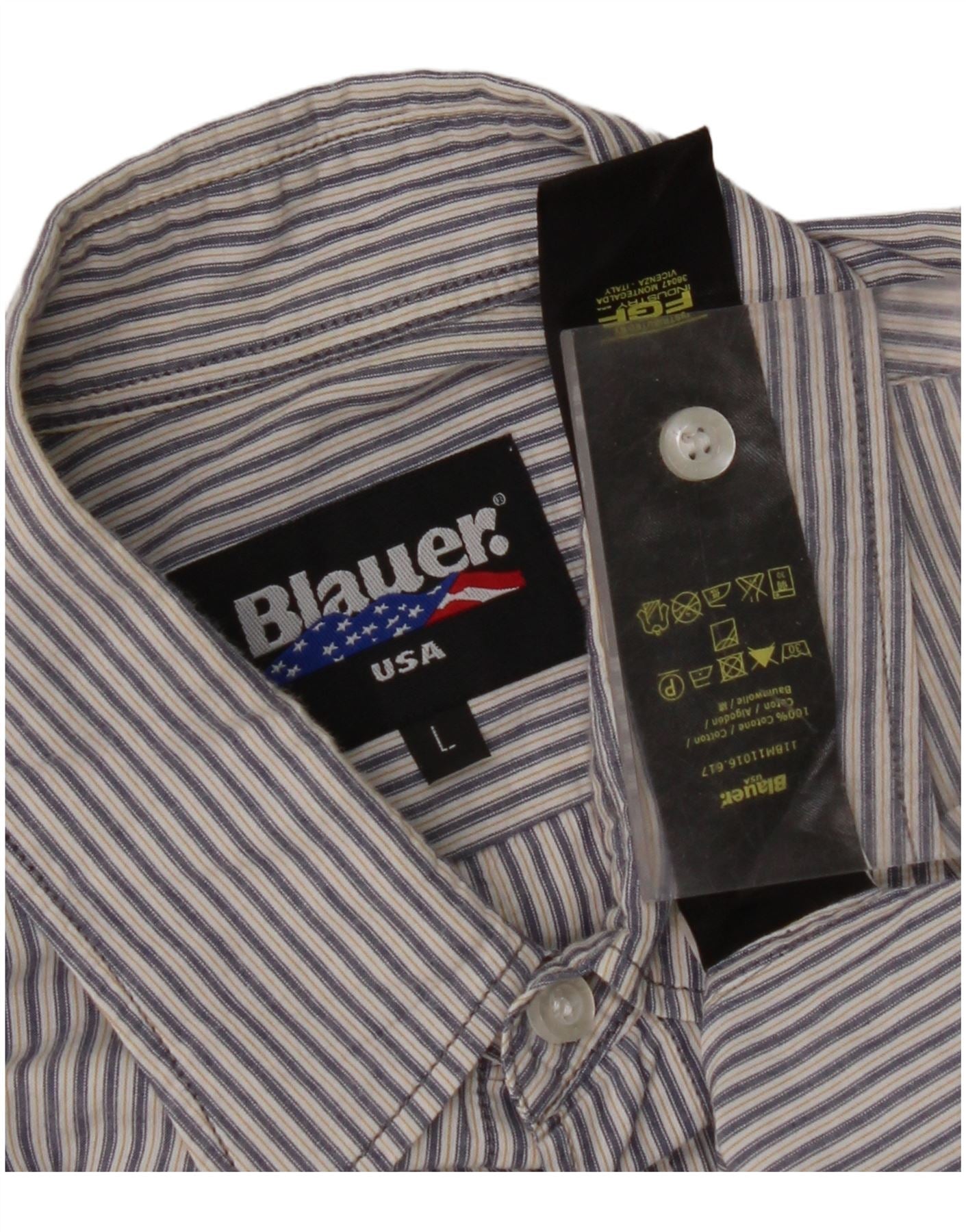 BLAUER Camisa militar de manga corta para hombre de algodón a rayas azules grandes
