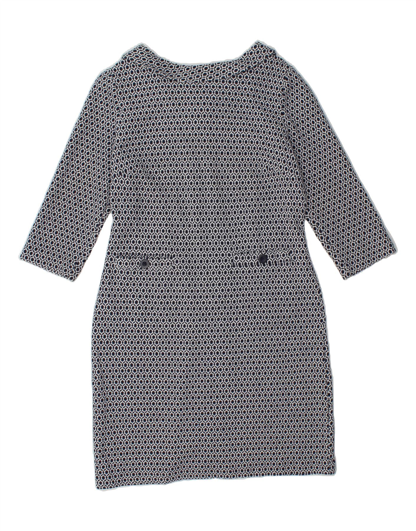 BODEN Womens 3/4 Sleeve Zip Neck Sheath Dress UK 12 Medium Blue Geometric