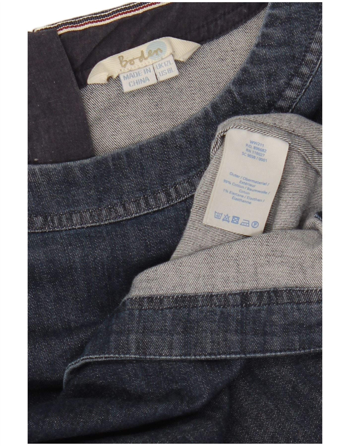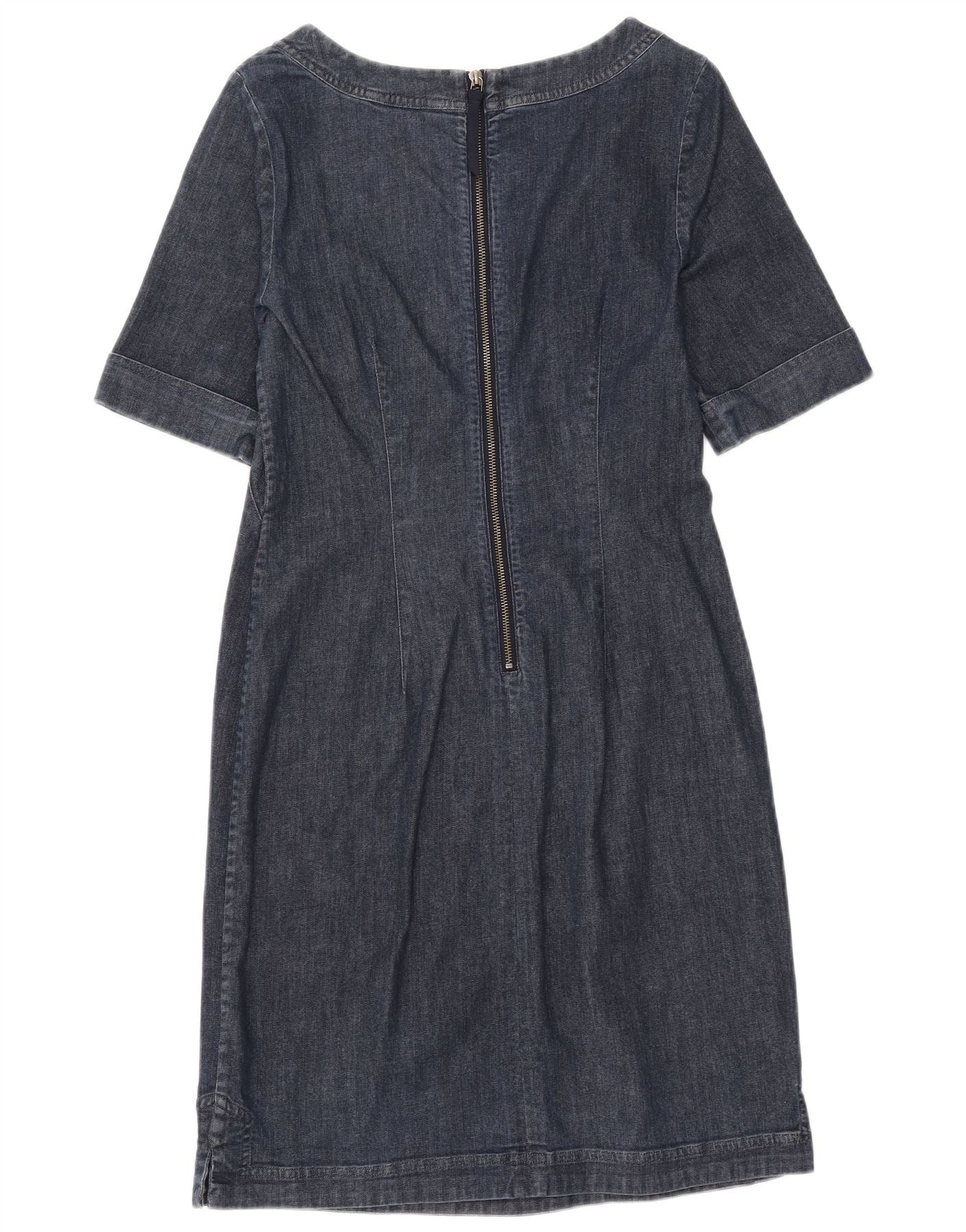 - AI Description: This Boden womens denim dress is crafted from a comfortable blue cotton blend with a hint of stretch. It features a classic round neck and practical short sleeves. The dress offers a regular fit, ensuring both comfort and a flattering silhouette. A full zip closure provides easy wear, maintaining a sleek, uncluttered look. The durable denim fabric makes it a versatile wardrobe essential.
