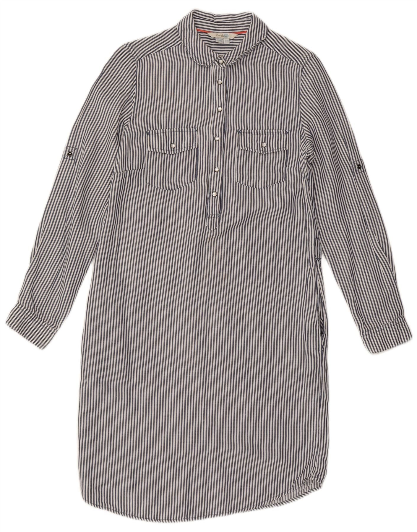 BODEN Womens Long Sleeve Shirt Dress UK 8 Small Navy Blue Striped Tencel