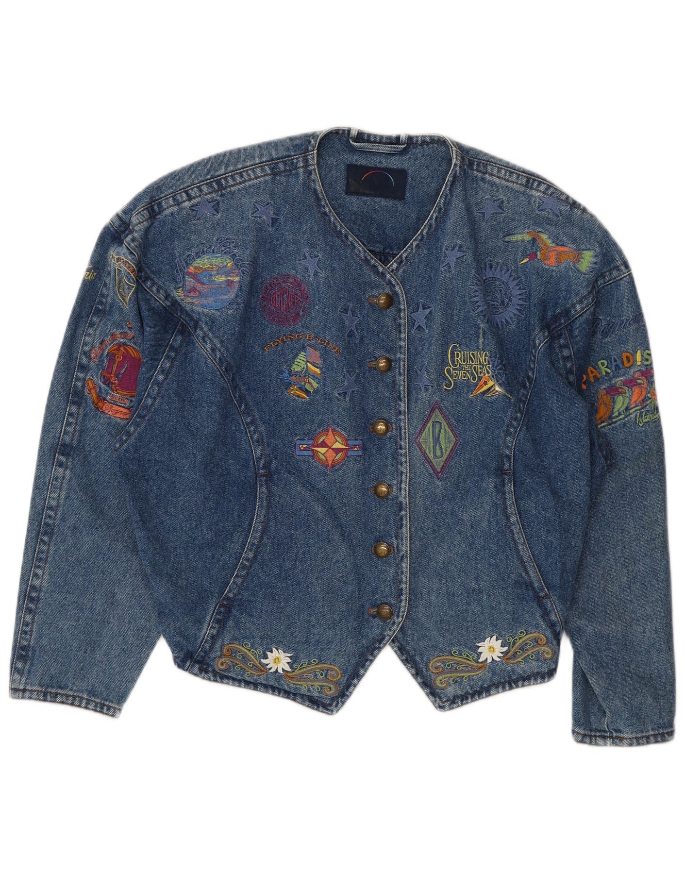 Bogner Mujer Graphic Crop Denim Chaqueta Reino Unido 14 Azul Medio 90s