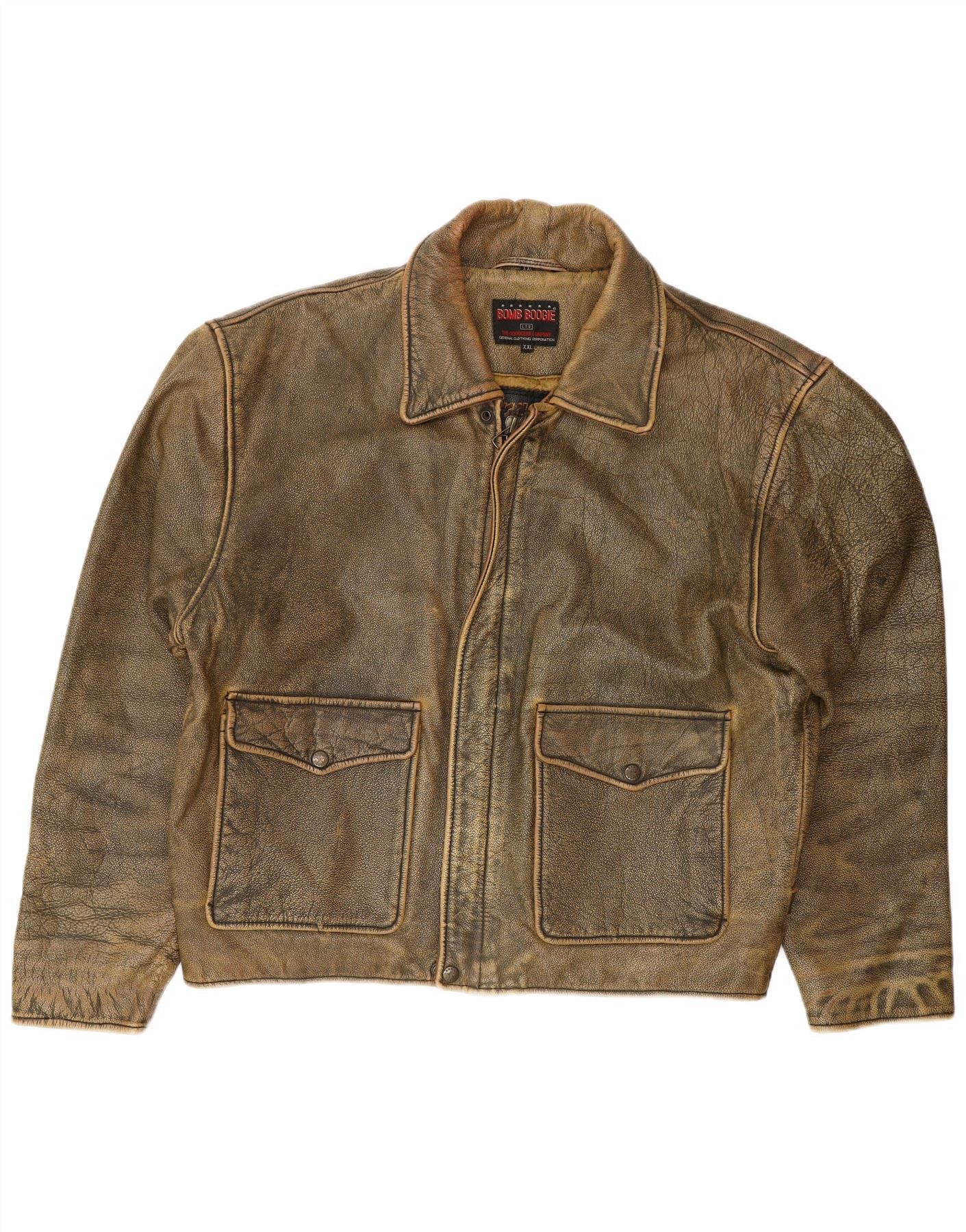 Home > Chaquetas de cuero vintage > Chaquetas de cuero marrón vintage > BOMB BOOGIE Chaqueta de cuero para hombre UK 44 2XL Motero de cuero marrón