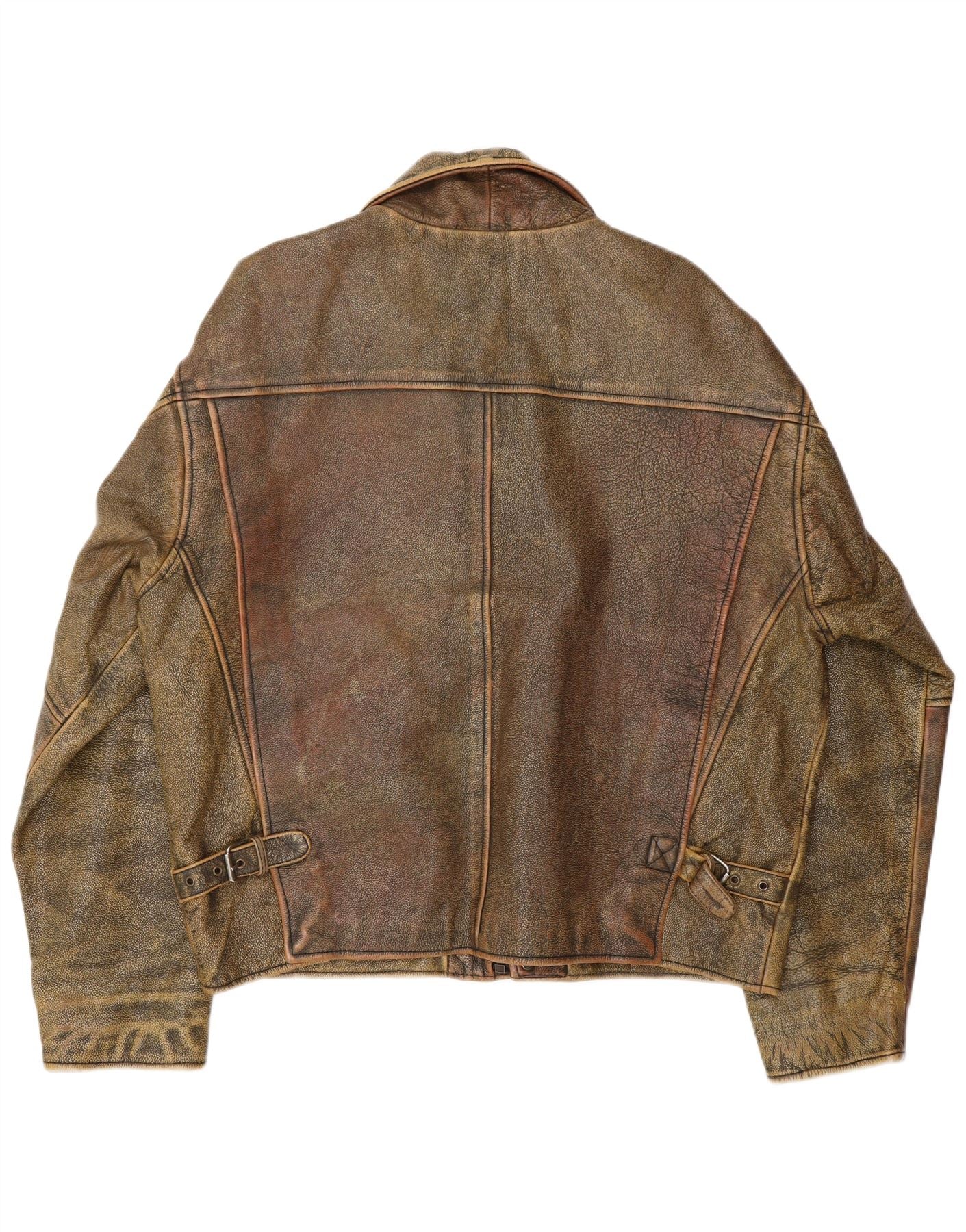 BOMB BOOGIE Chaqueta de cuero para hombre UK 44 2XL Motero de cuero marrón
