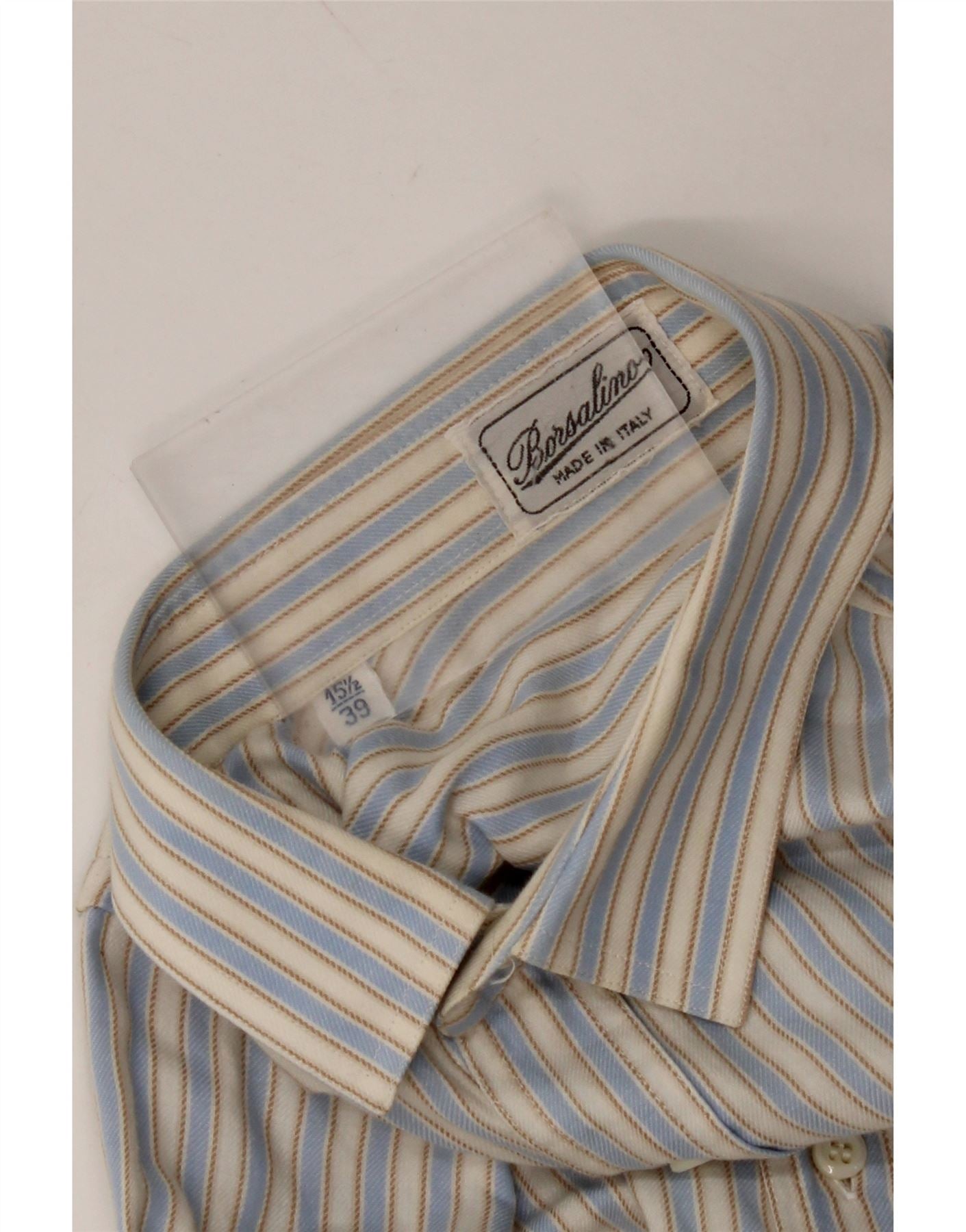 BORSALINO Camisa Hombre Talla 39 15 1/2 Mediano Azul Rayas