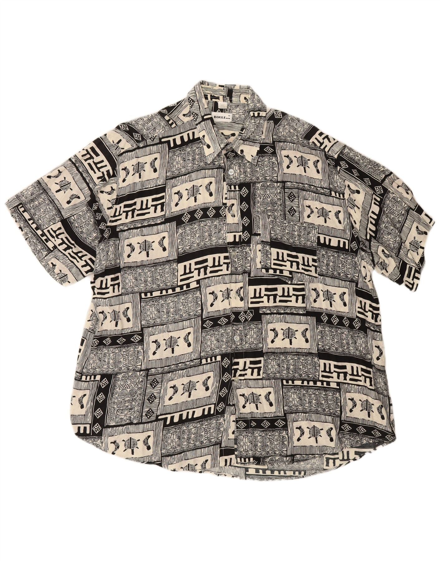 BOULEE Camisa Manga Corta Hombre Talla 45/46 2XL Viscosa Patchwork Negra