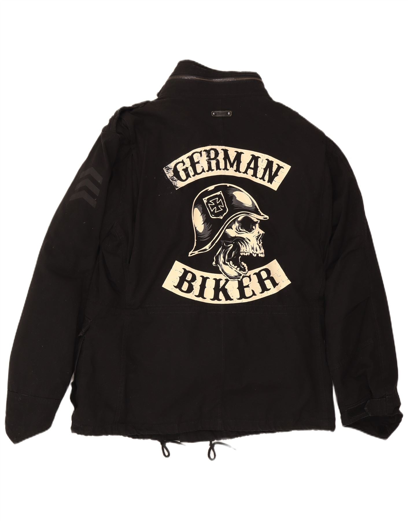 BRANDIT Chaqueta militar con capucha y gráfico para hombre UK 40 Large Poliéster negro