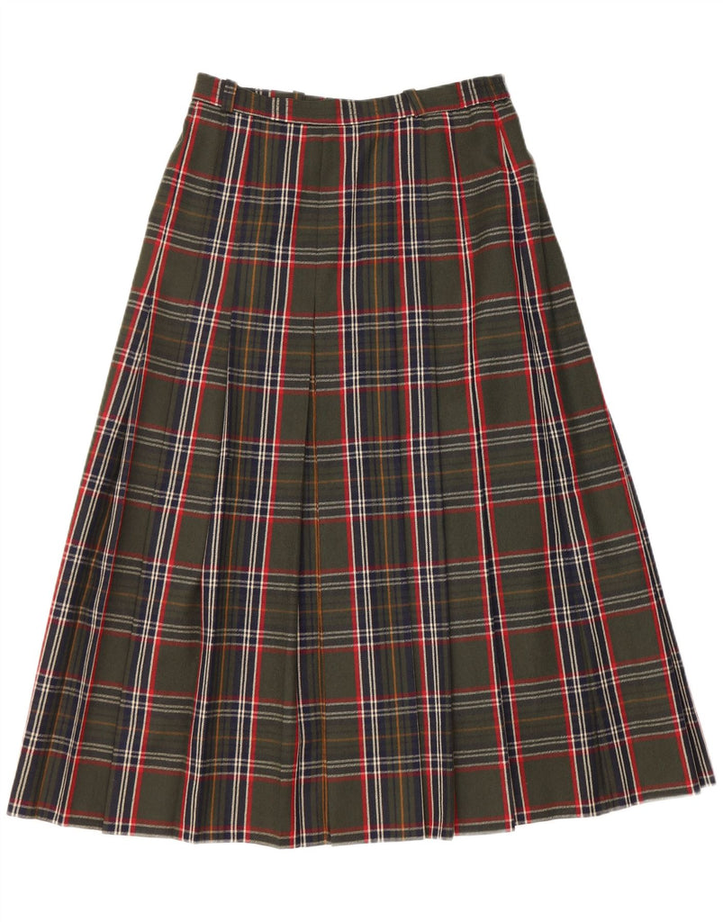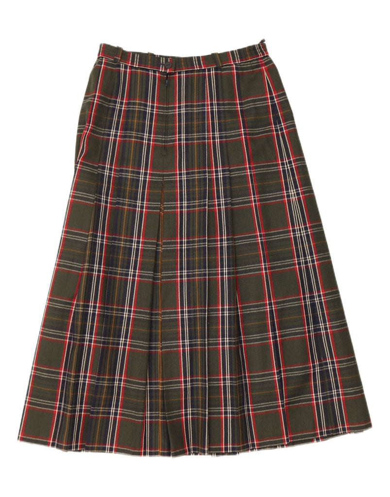 BRENDELLA Womens High Waist A-Line Skirt W30 Medium Khaki Plaid Wool