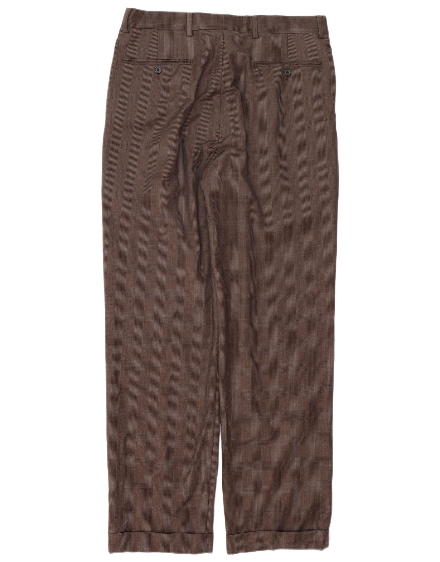 BROOKS BROTHERS Pantalón de traje con pinzas Madison para hombre W33 L31 Lana a cuadros marrón