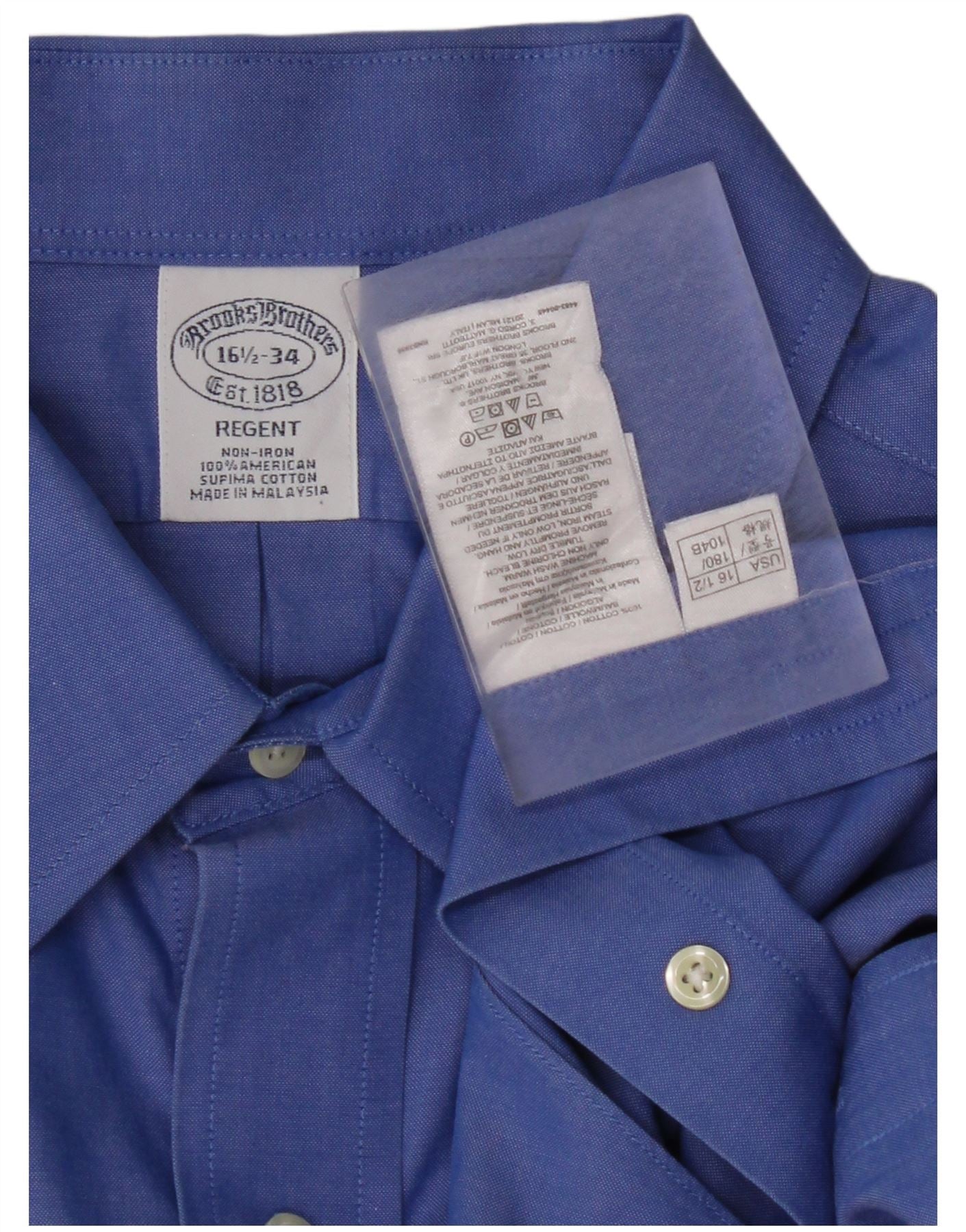 BROOKS BROTHERS Camisa Regent para hombre Talla 16 1/2 Algodón azul grande