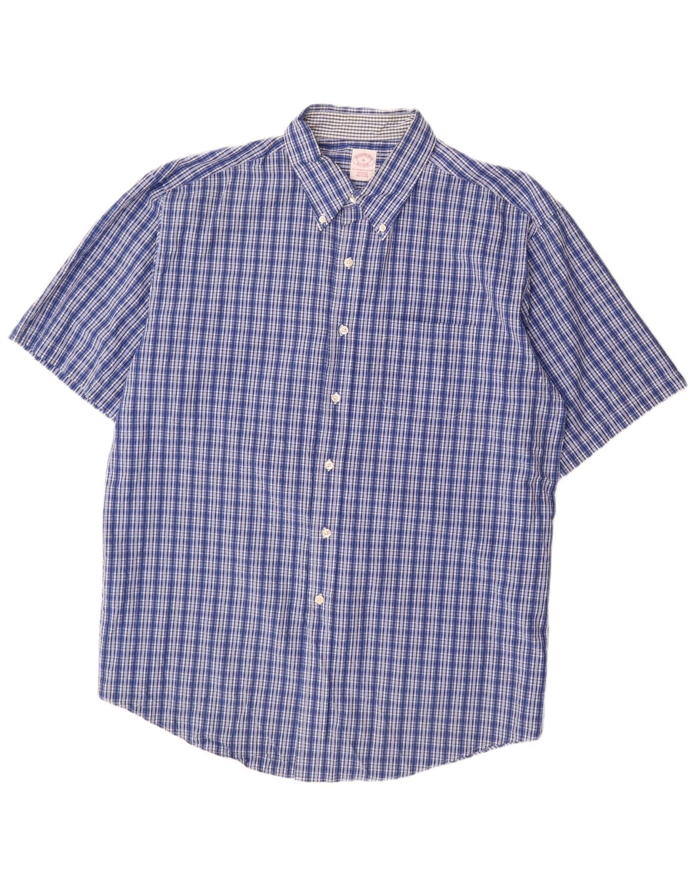 BROOKS BROTHERS Camisa de Manga Corta Regular Fit para Hombre XL Algodón a Cuadros Azul