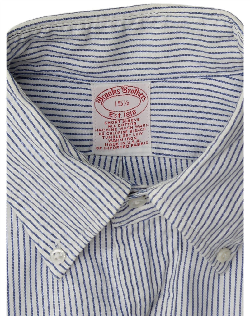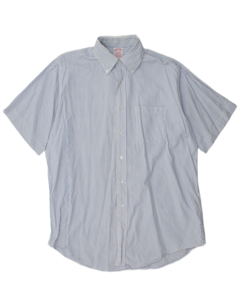 BROOKS BROTHERS Mens Short Sleeve Shirt Size 15 1/2 Medium Blue Pinstripe