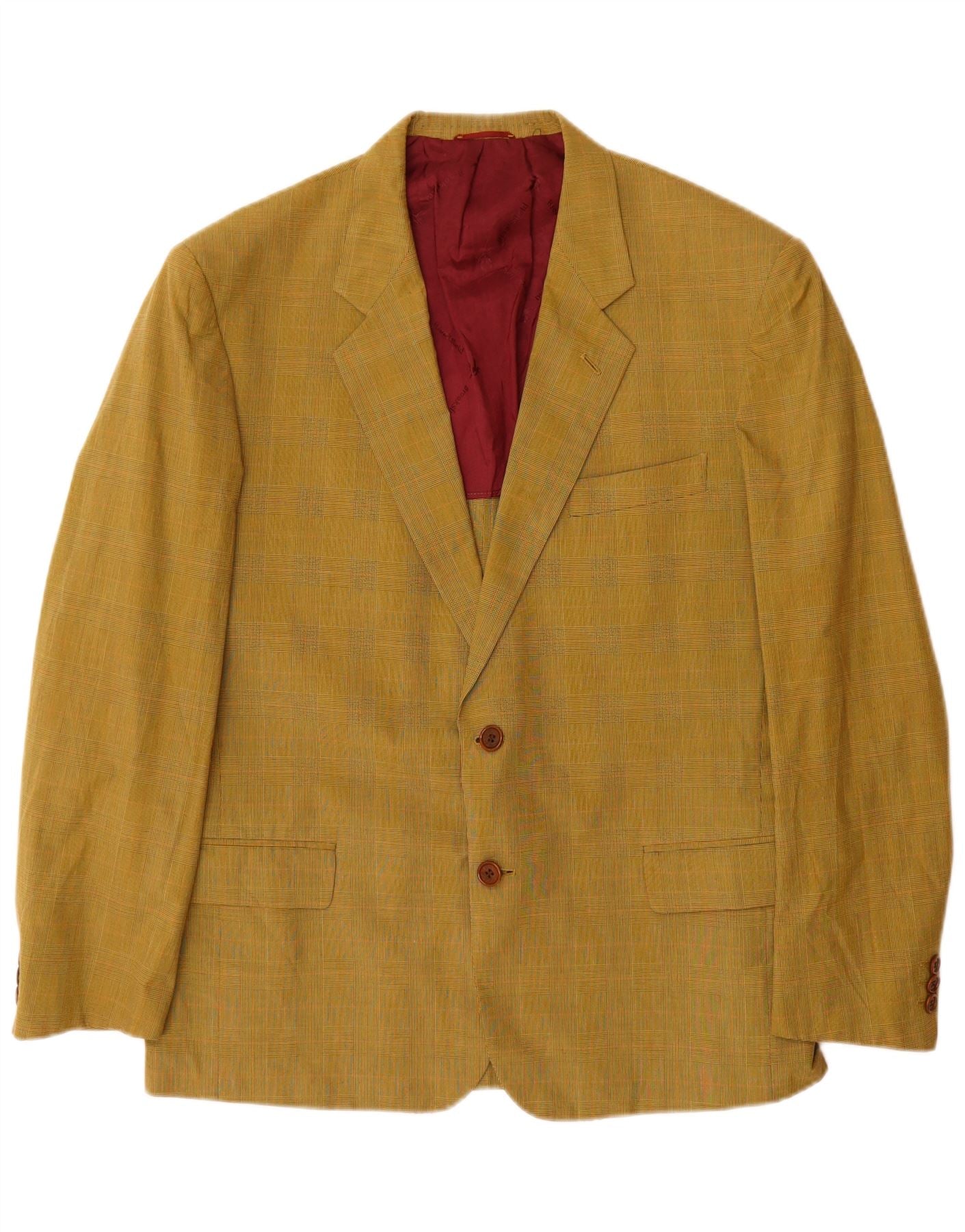 BROOKSFIELD Mens 2 Button Blazer Jacket IT 52 XL Yellow Check Cotton