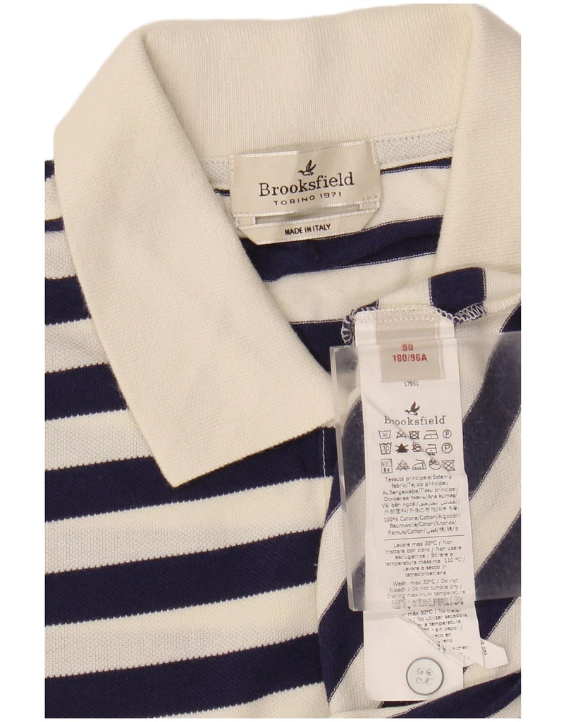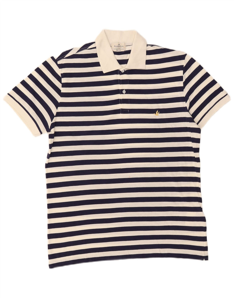 BROOKSFIELD Mens Polo Shirt IT 50 Medium Navy Blue Striped Cotton Nautical