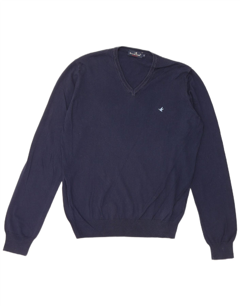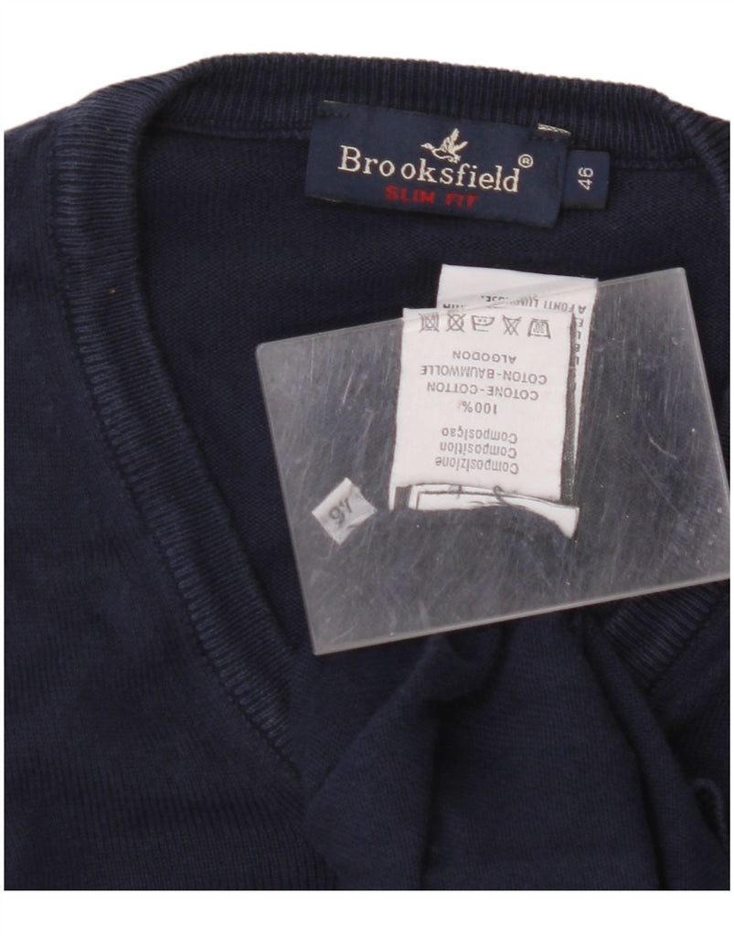 BROOKSFIELD Mens Slim Fit V-Neck Jumper Sweater IT 46 Small Navy Blue