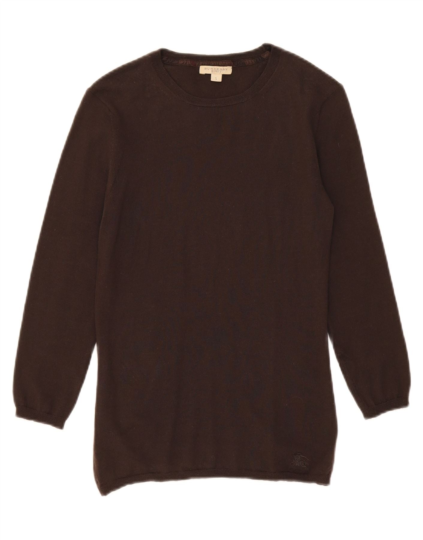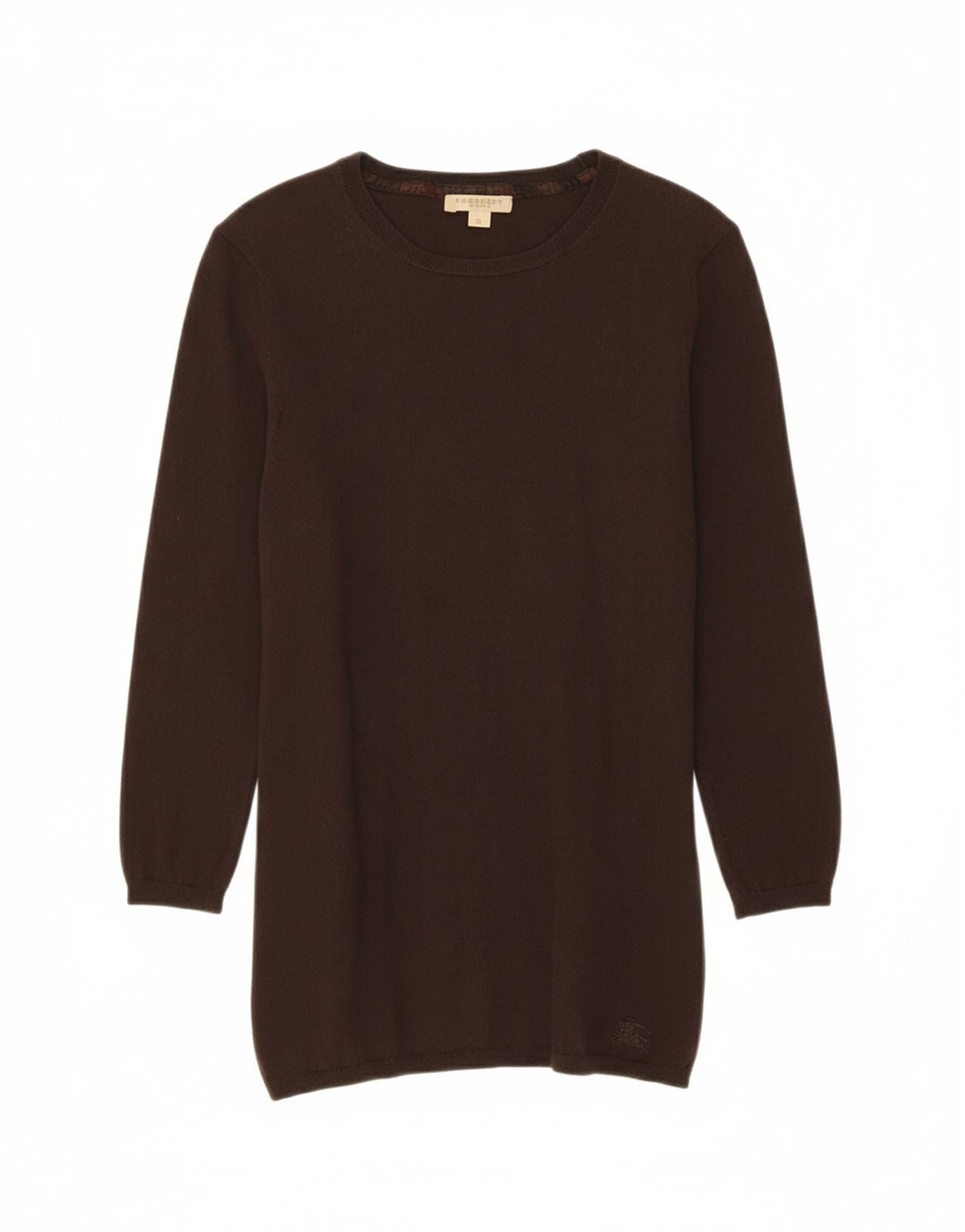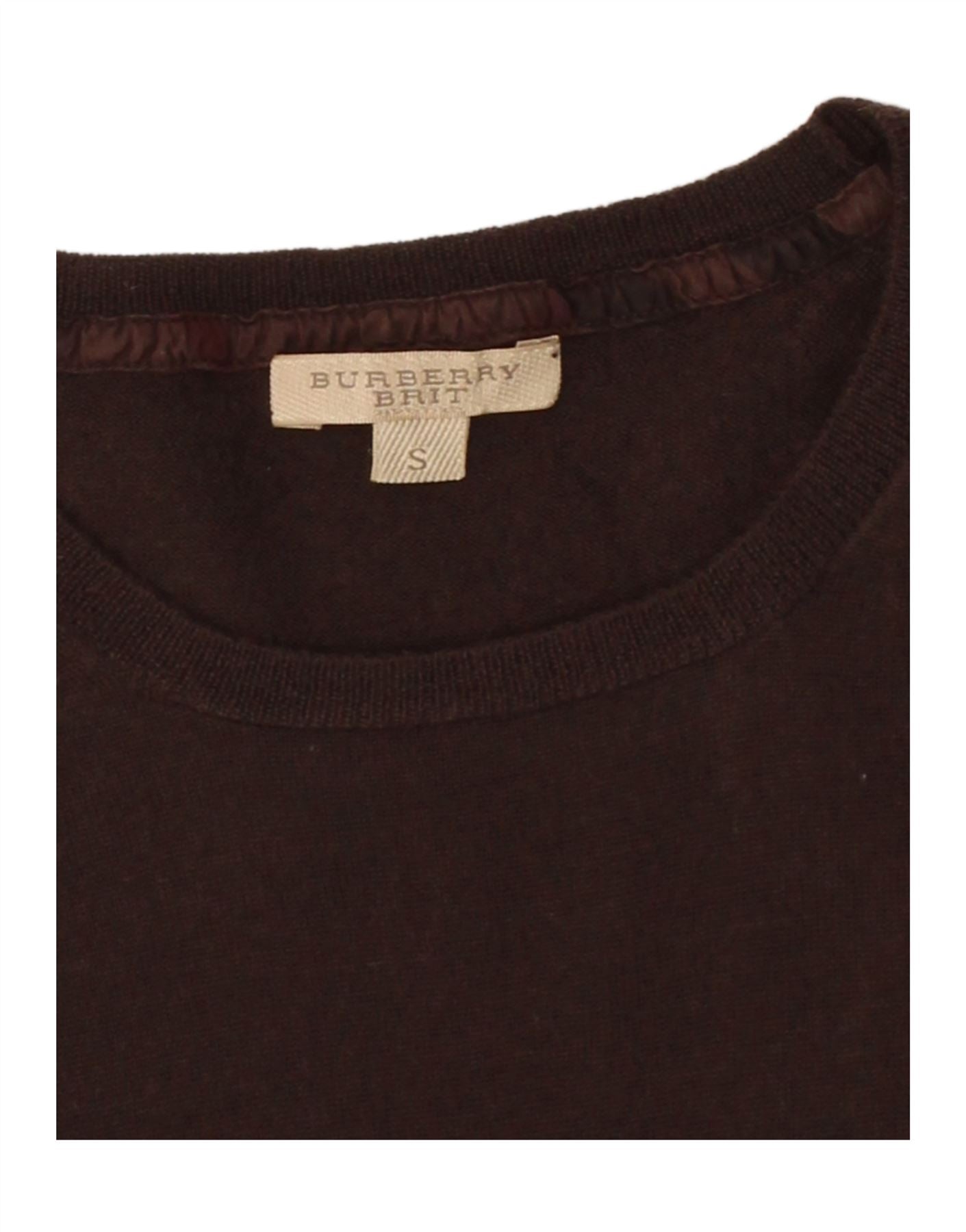 BURBERRY Womens 3/4 Sleeve Crew Neck Jumper Sweater UK 8 Small Brown Wool