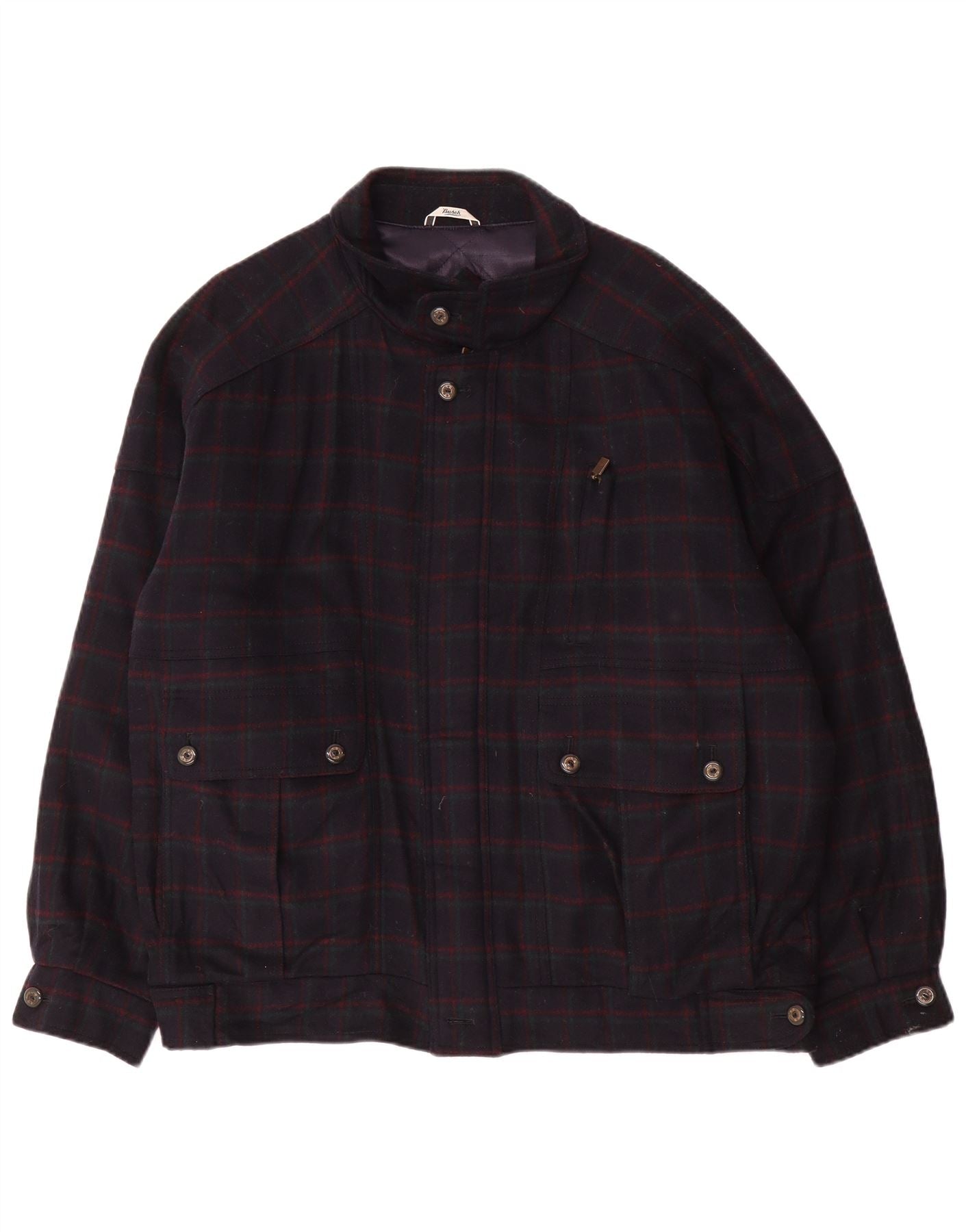 BUSCH Chaqueta bomber para hombre UK 42 XL Lana a cuadros azul marino