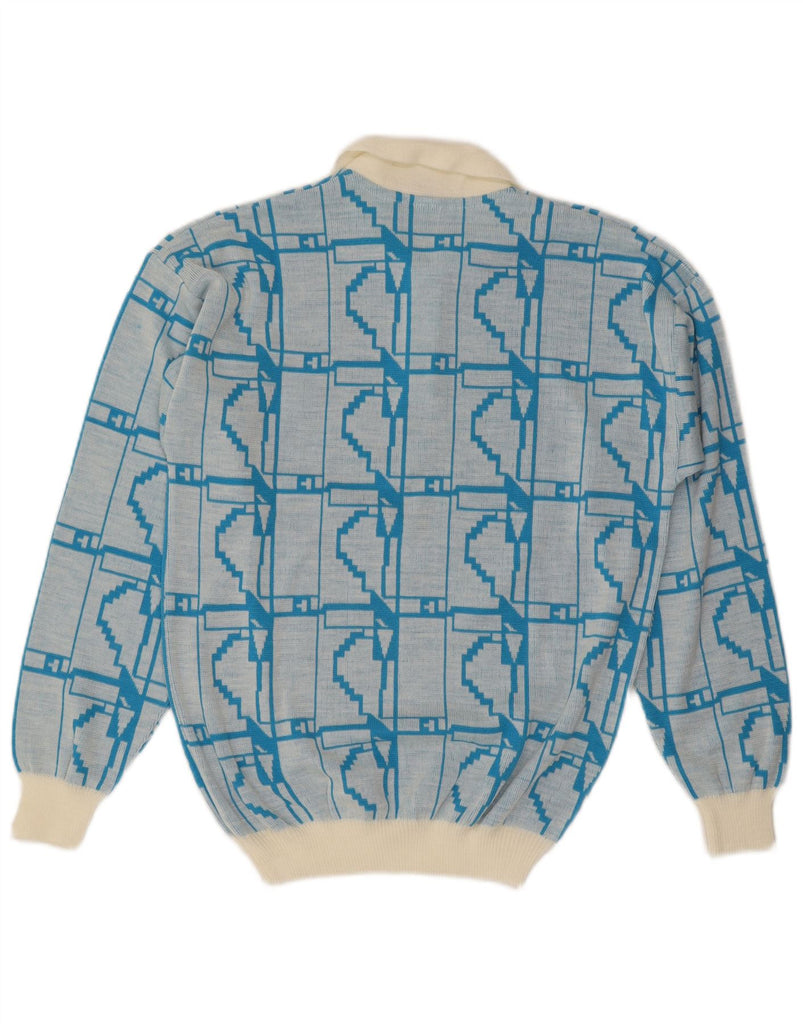 C&A Mens Polo Neck Jumper Sweater IT 48/50 Medium Blue Geometric