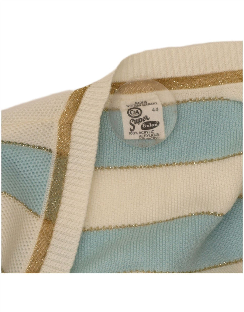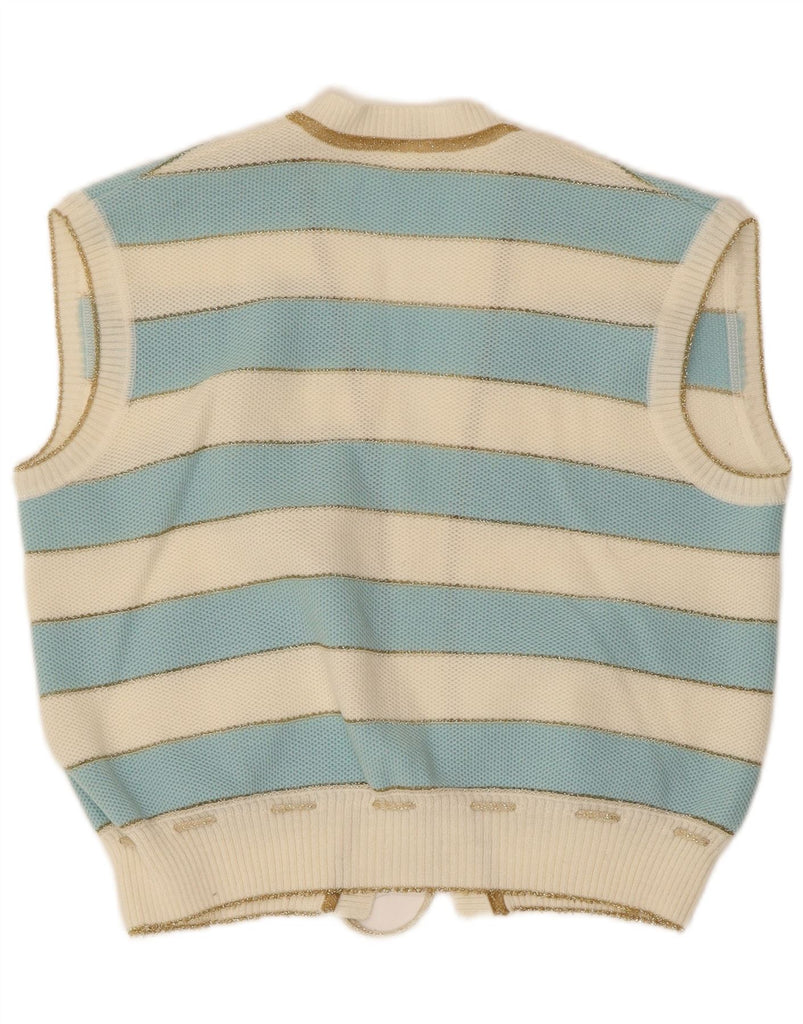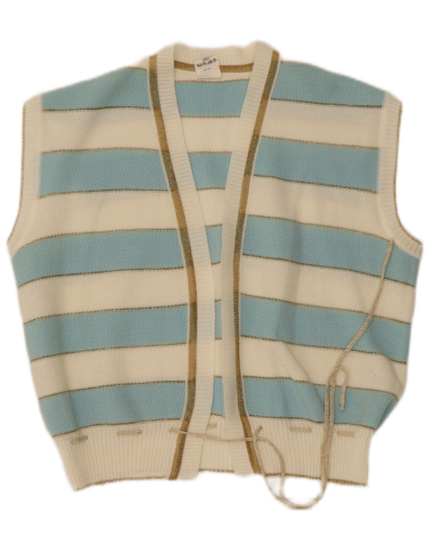 C&A Womens Crop Sleeveless Cardigan Sweater EU 44 XL Blue Striped Acrylic