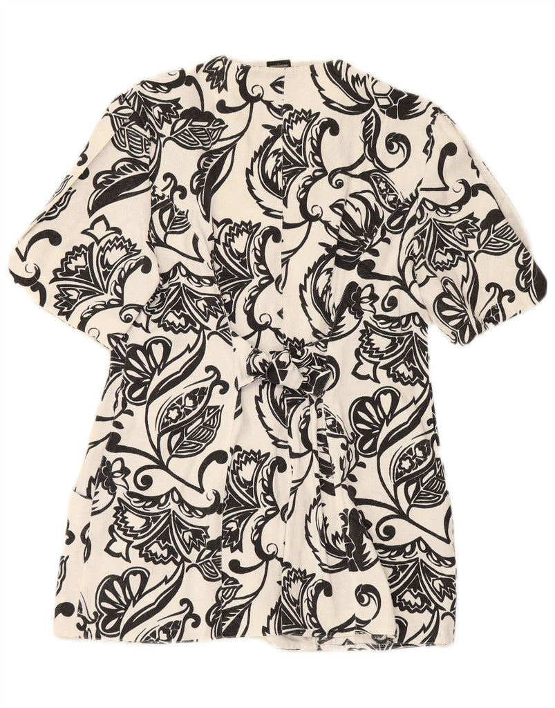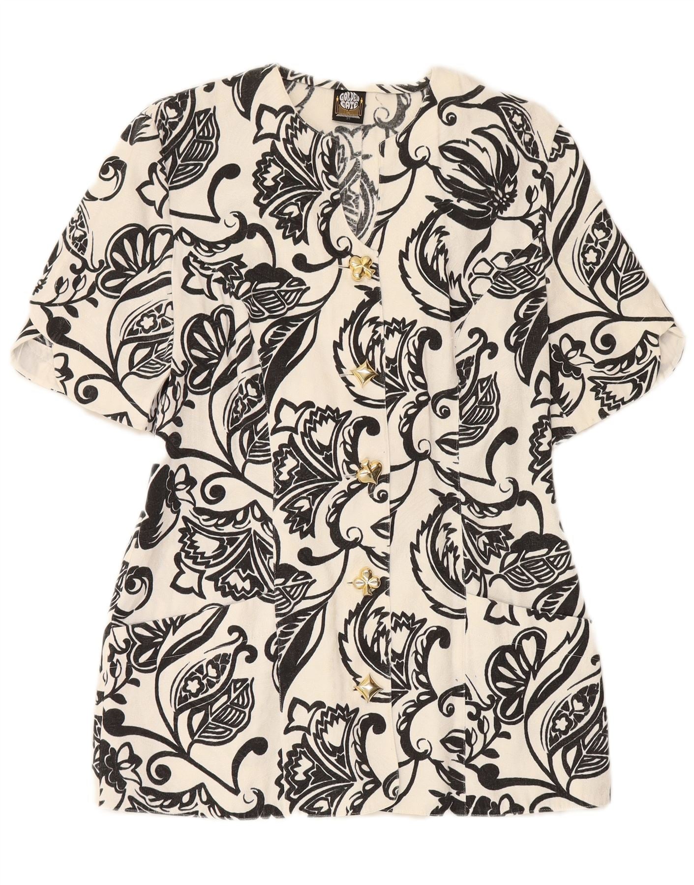 C&A Womens Short Sleeve Shirt Blouse UK 14 Medium White Floral Polyester
