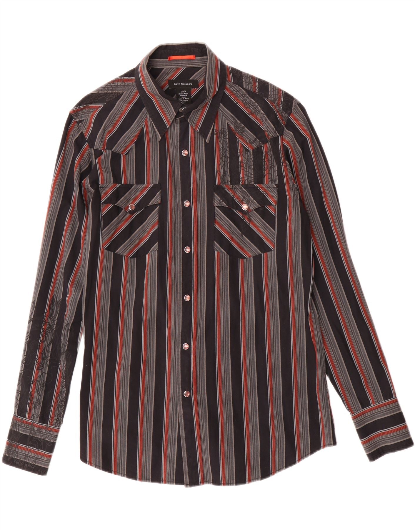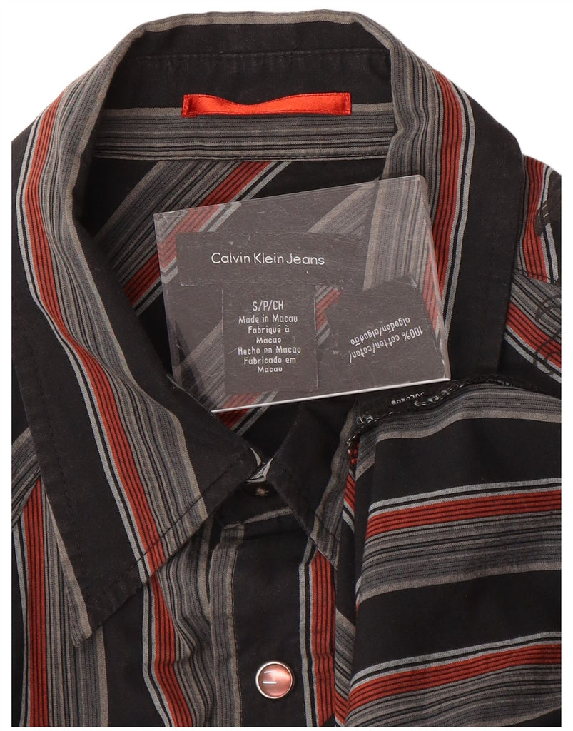 CALVIN KLEIN JEANS Camisa estampada para hombre Algodón de rayas negras pequeña