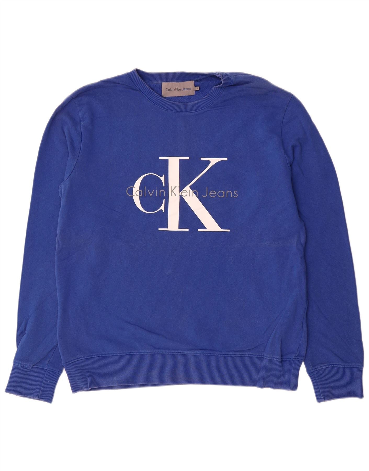 CALVIN KLEIN JEANS Sudadera estampada para hombre Jumper Large Azul Algodón