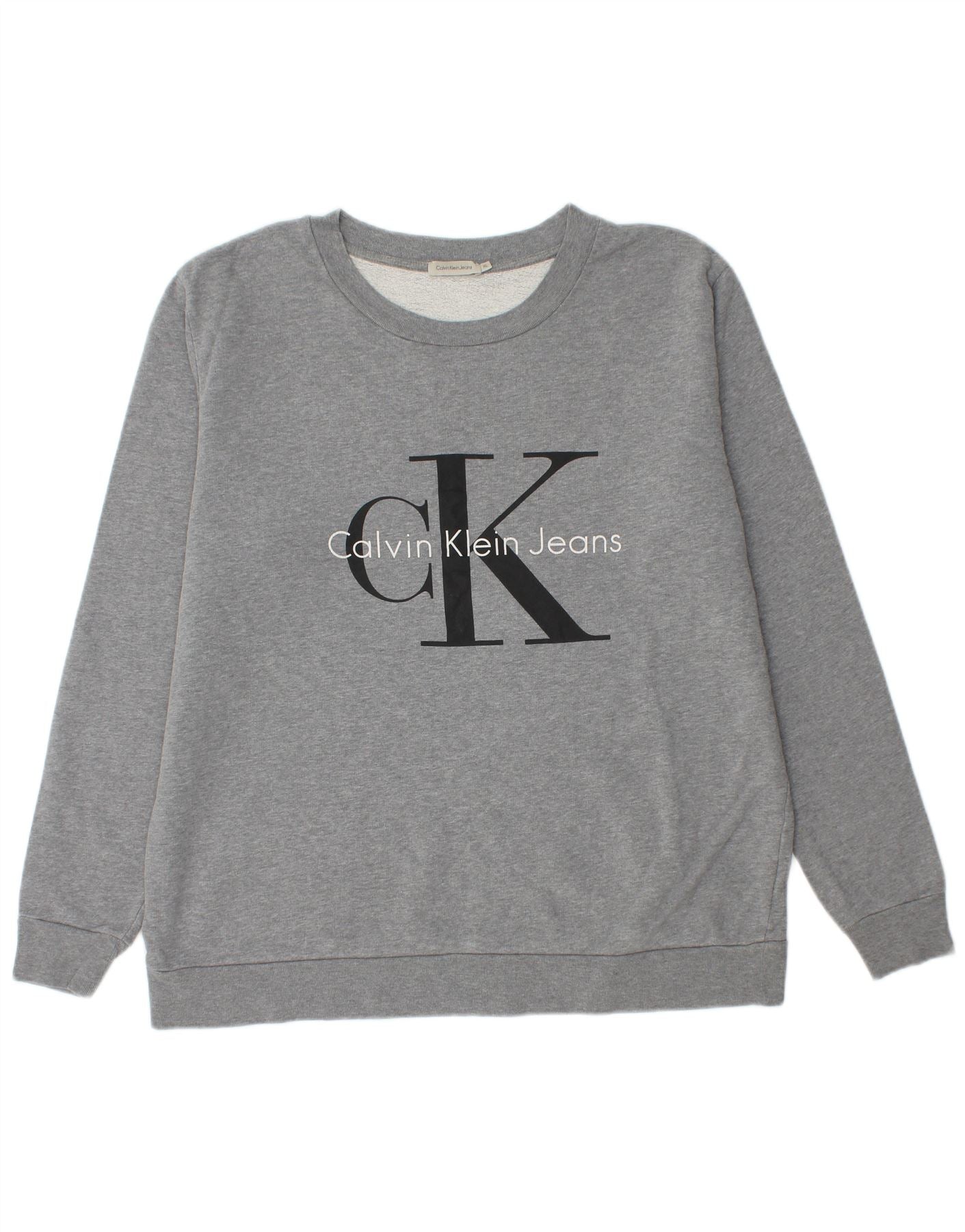 CALVIN KLEIN JEANS Sudadera gráfica para hombre Jumper XL Gris Algodón