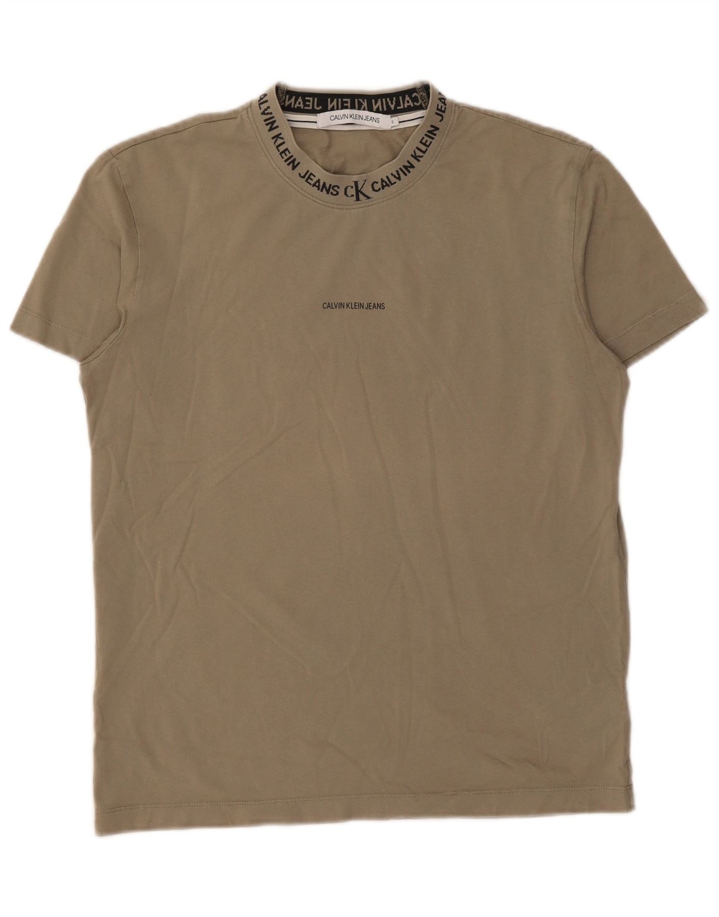 CALVIN KLEIN JEANS Camiseta gráfica para hombre Top Small Khaki Cotton