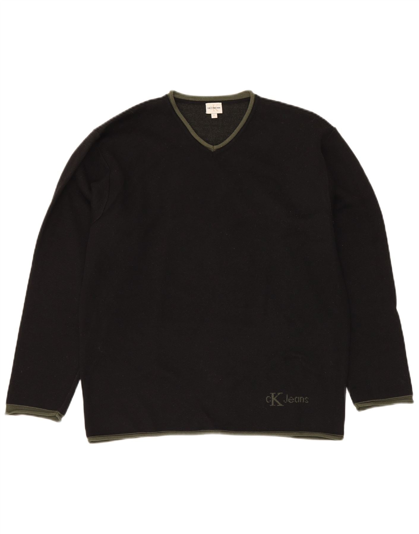 CALVIN KLEIN JEANS Jersey con cuello en V para hombre de lana negra mediana