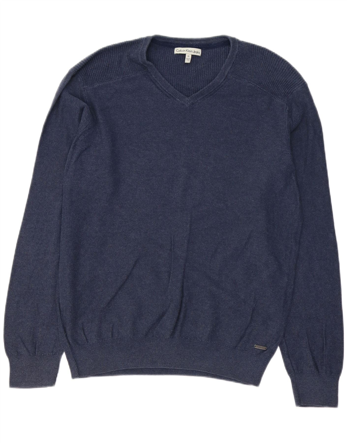 CALVIN KLEIN JEANS Jersey con cuello en V para hombre Algodón azul marino medio