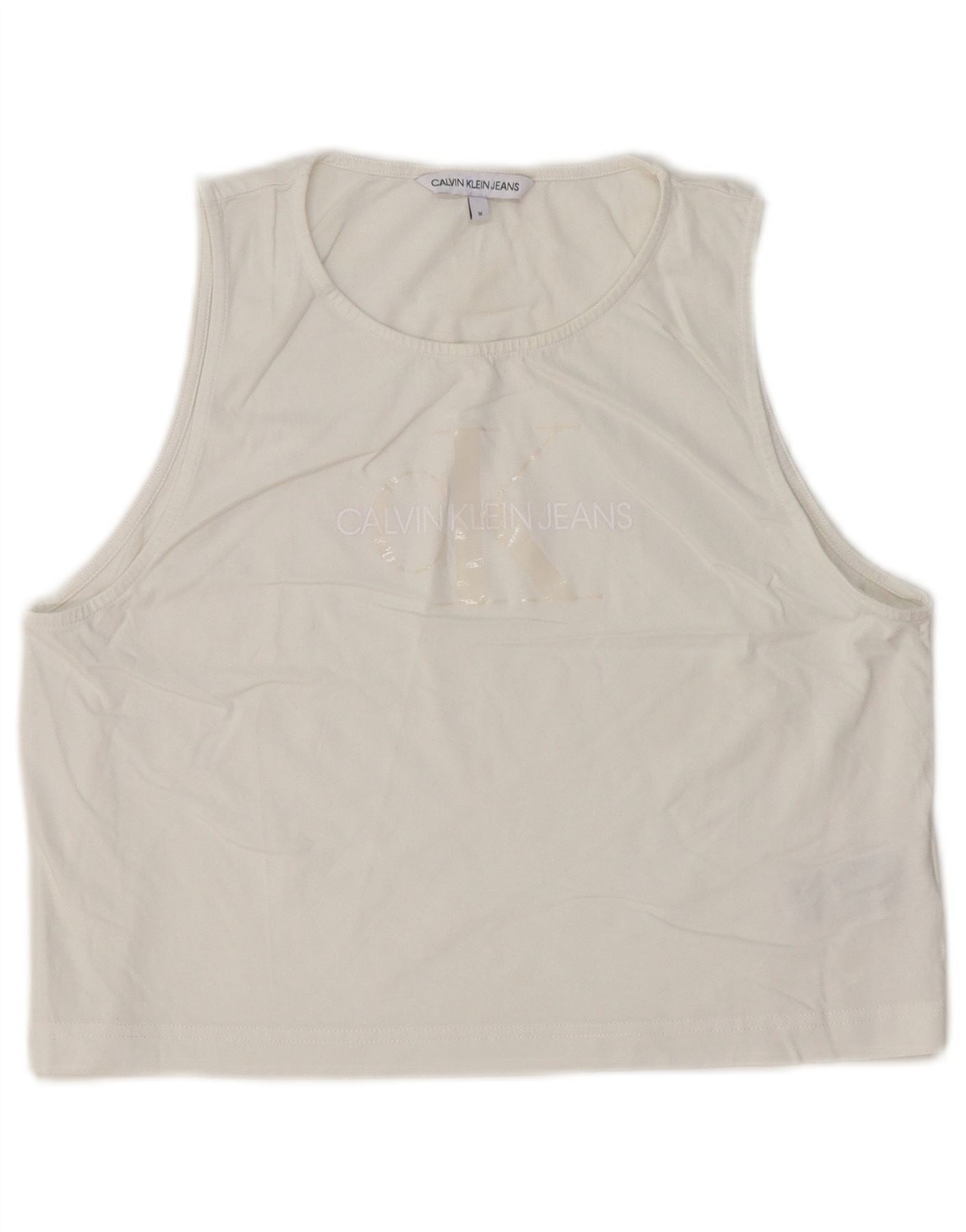 Calvin Klein Jeans Top sin mangas con gráfico corto para mujer Reino Unido 12 Algodón blanco mediano