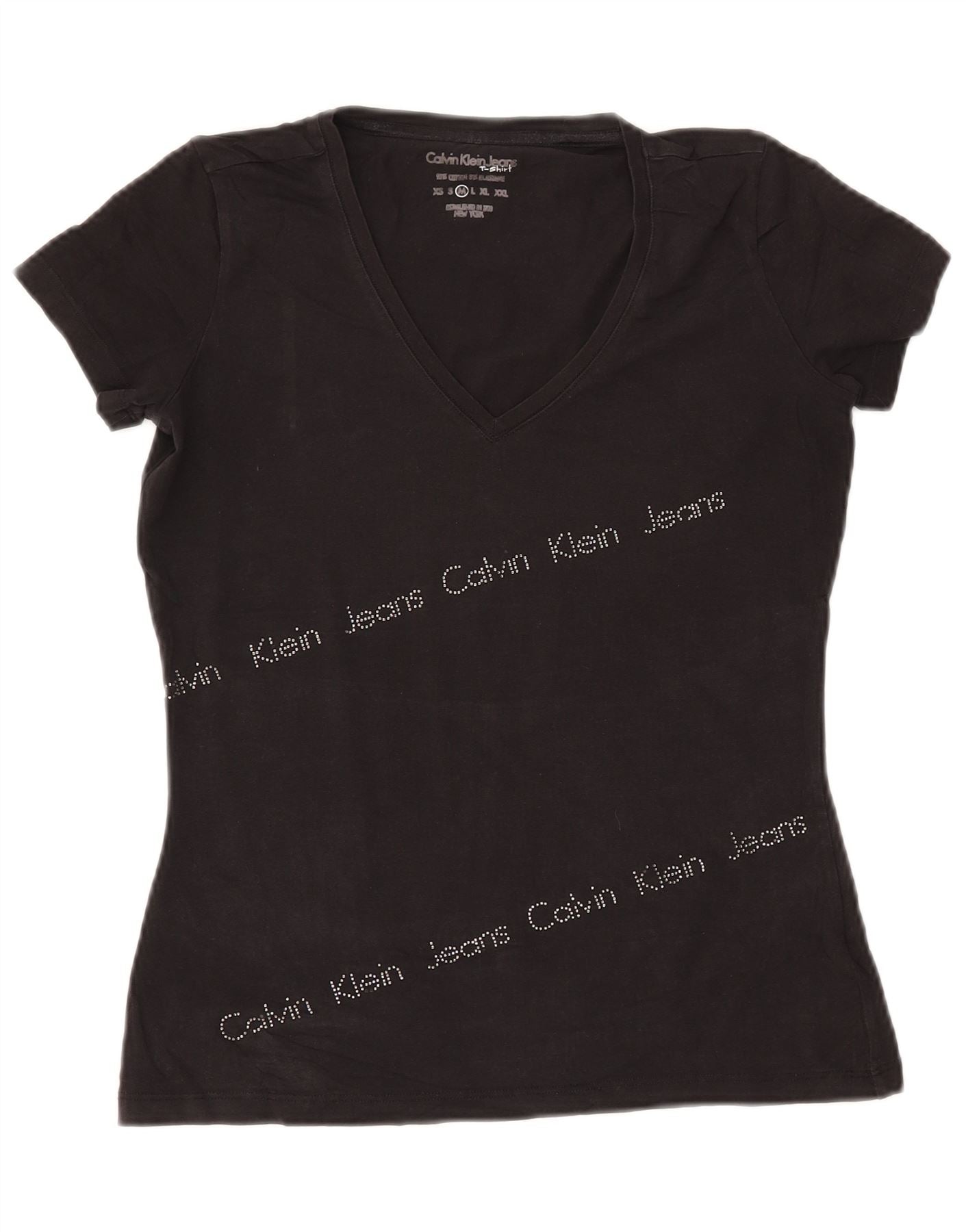 CALVIN KLEIN JEANS Camiseta gráfica para mujer Top UK 12 Medium Black