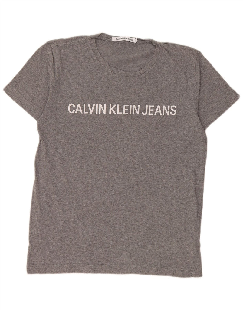 CALVIN KLEIN JEANS Camiseta gráfica para mujer Top UK 44 Algodón gris medio