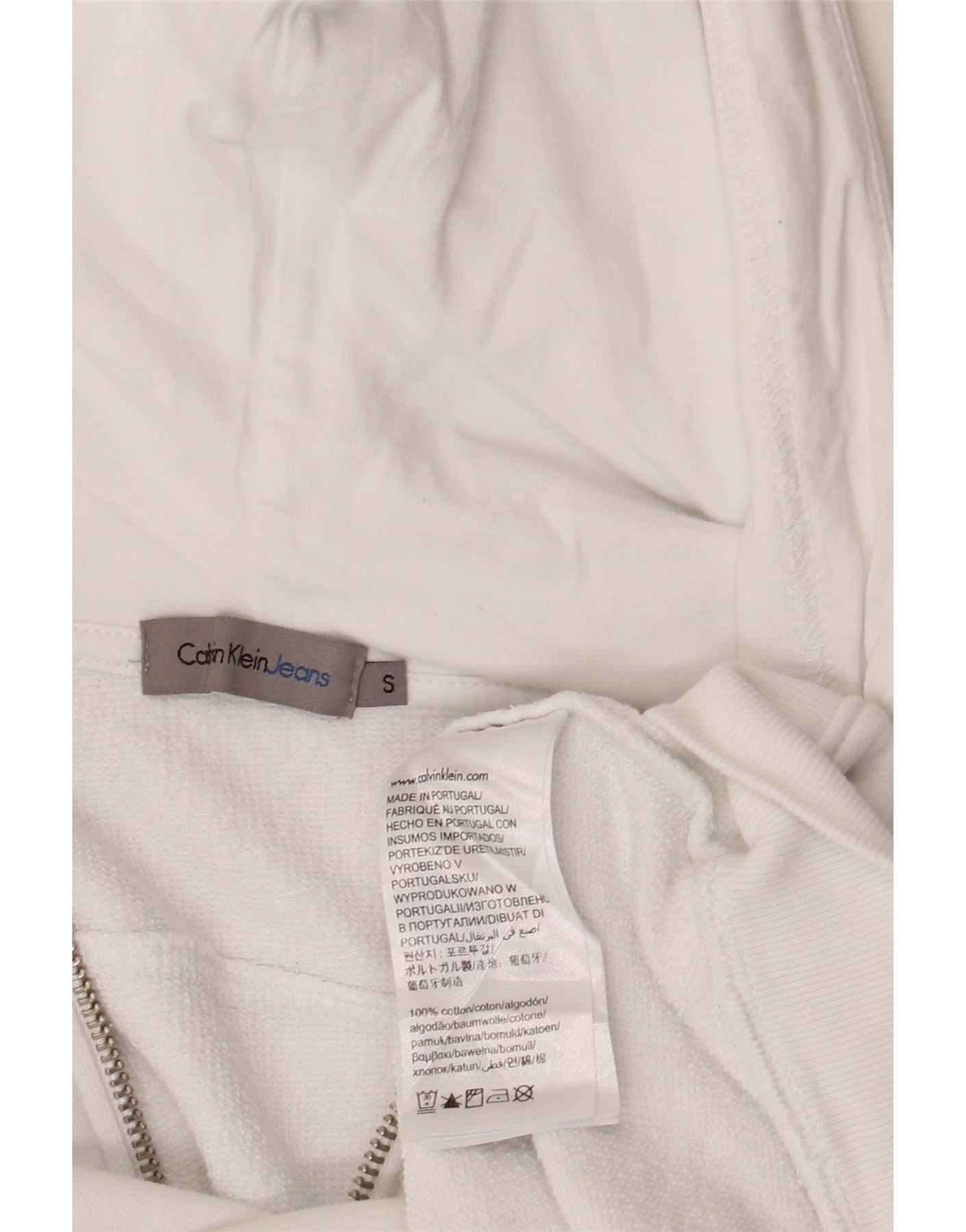 Home > De las mujeres > Ropa Depop > CALVIN KLEIN JEANS Suéter con capucha y cremallera gráfica para mujer UK 10 Small White