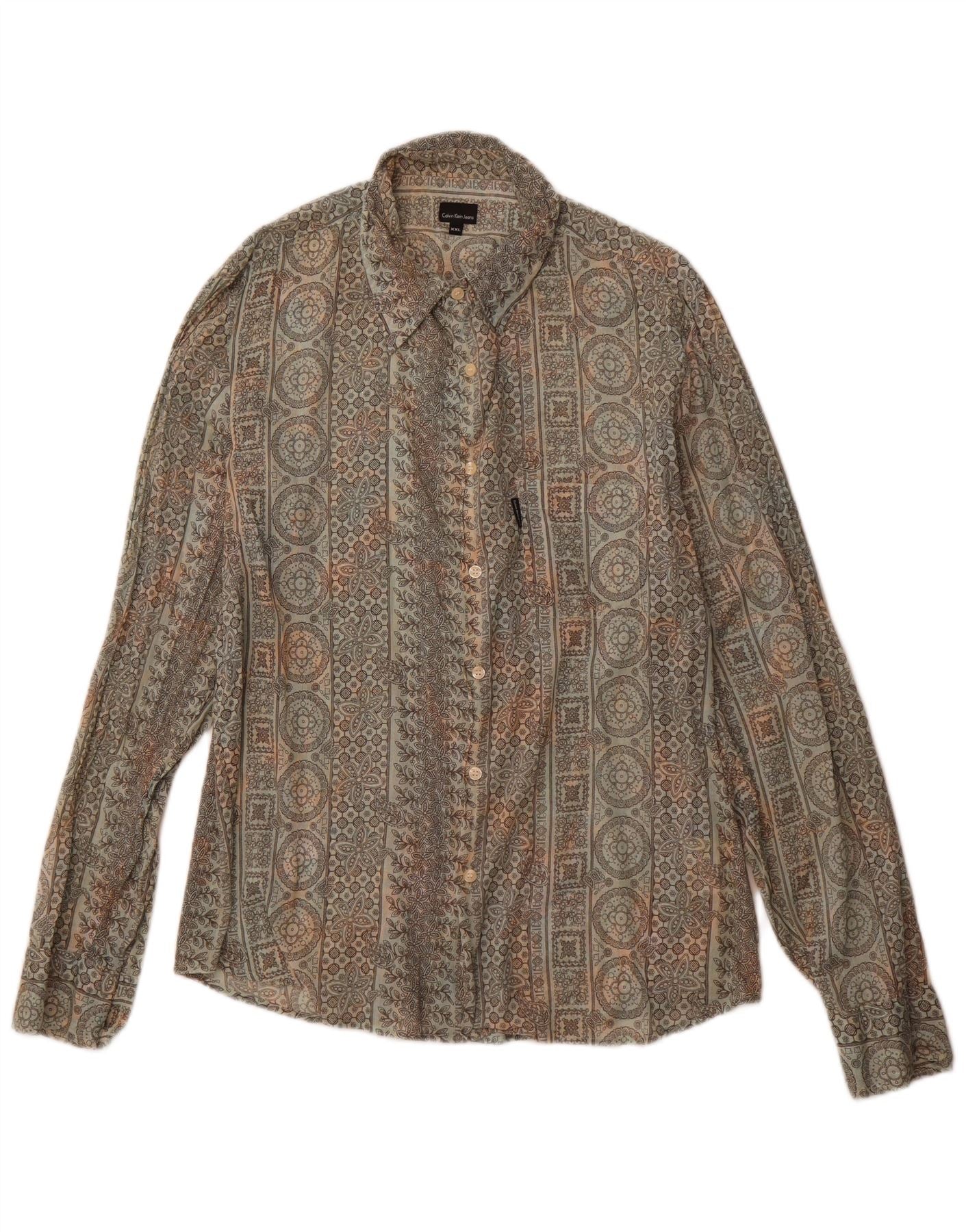 CALVIN KLEIN JEANS Camisa para mujer UK 20 2XL Algodón floral gris