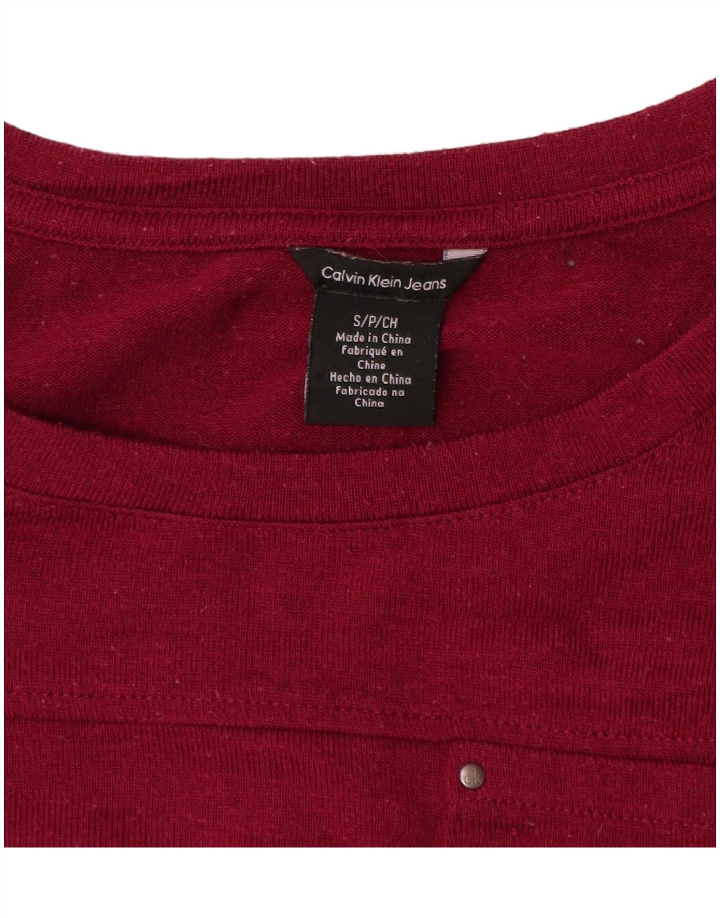 CALVIN KLEIN JEANS Top para mujer manga 3/4 UK 10 Small Borgoña Poliéster