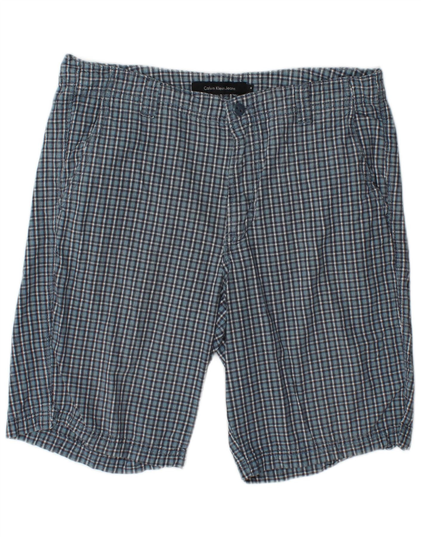 CALVIN KLEIN Pantalones cortos chinos para hombre W34 Algodón a cuadros azules grandes