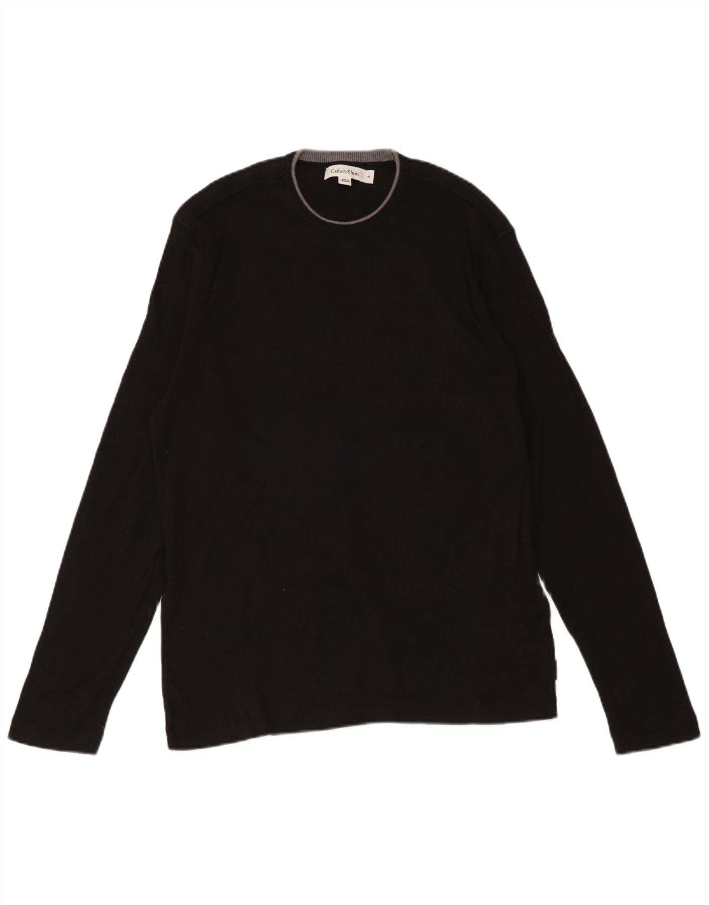 Calvin Klein Jersey de cuello redondo para hombre, suéter de algodón negro mediano