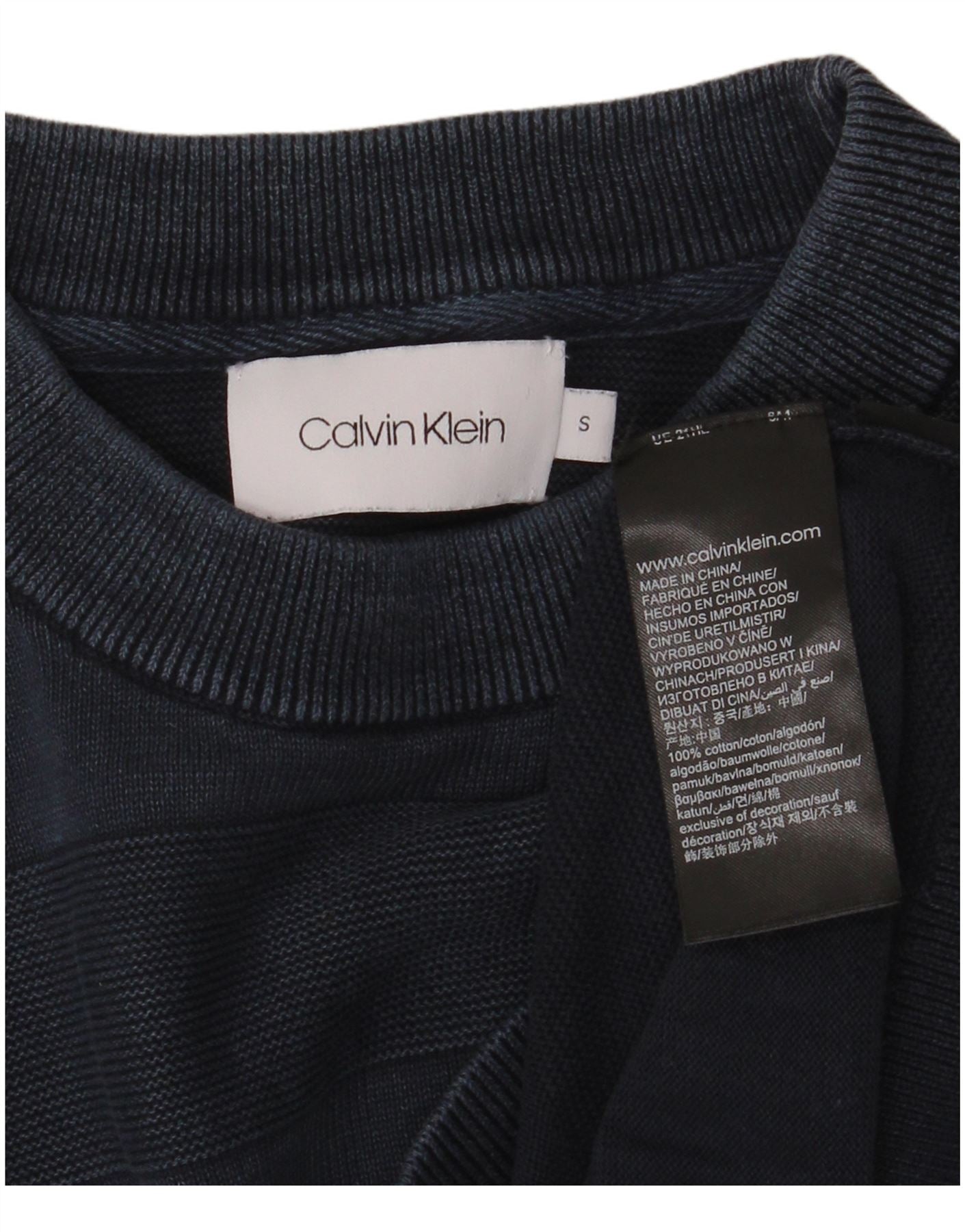 CALVIN KLEIN Jersey de cuello redondo para hombre pequeño de algodón a rayas azul marino