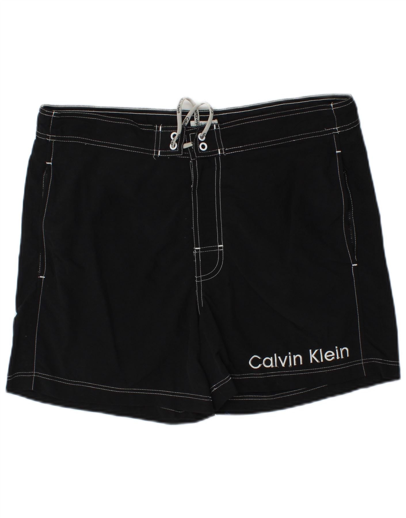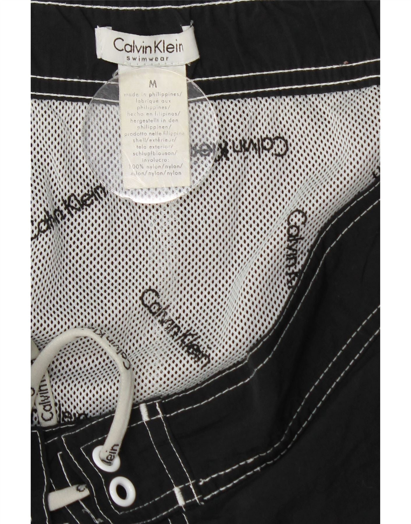 CALVIN KLEIN Bañador con estampado gráfico para hombre, tamaño mediano, nailon negro